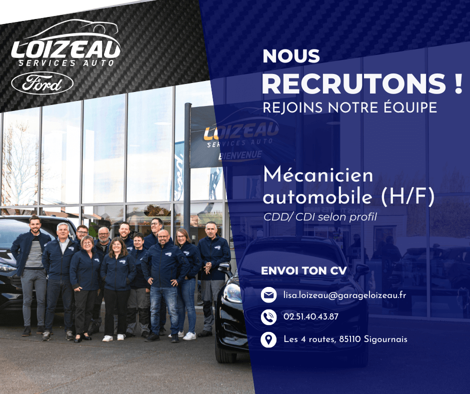 Garage familial et agent FORD, l'entreprise est gérée par Damien et Valérie LOIZEAU.