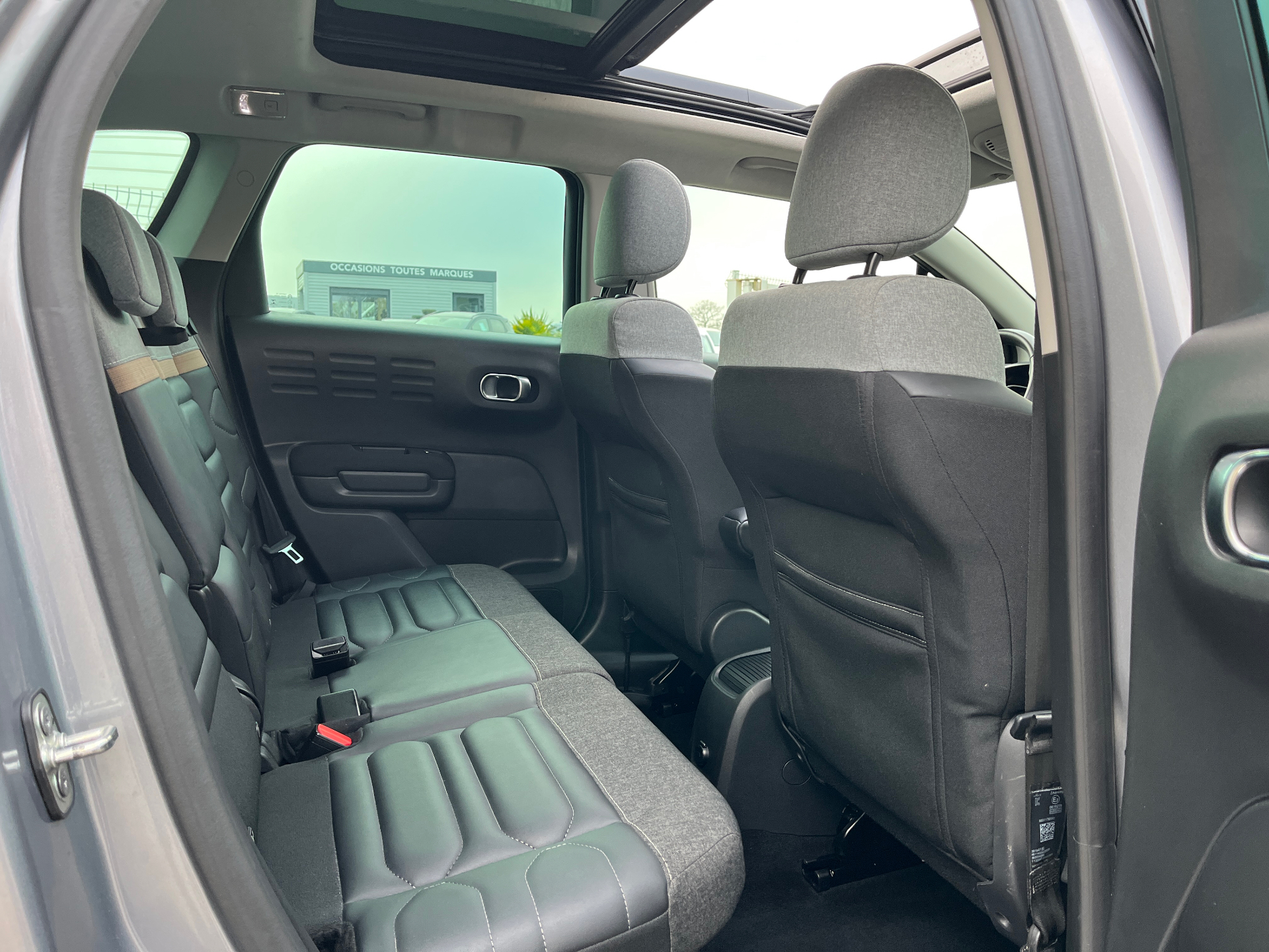 ABS avec REF, AFU et ESPAcces et demarrage mains libresAccoudoir central reglable sur siege conducteurActive Safety BrakeAide au demarrage en penteAide au stationnement ARAirbags frontaux AV, lateraux AV et rideauxAlerte Risque CollisionAllumage automatique des feuxFonction Apple Carplay & Androïd AutoAmbiance Metropolitan Graphite: Tissu effet cuir Mistral Black/Tissu Brasilia Graphite ChineBandeau de planche de bord gaine Brasilia Grey chineBanquette AR coulissanteBanquette AR fractionnable 2/3 - 1/3Barres de toit Noir BrillantCitroen Connect Nav sur tablette tactile 9'': comprend le systeme de navigation TomTom,Climatisation automatiqueCoques de retroviseurs exterieurs Noir BrillantDecors exterieurs Noir BrillantDetection de sous-gonflageEclairage a LED en bas de facade centraleFeux diurnes a LEDFixations ISOFIX avec troisieme point dancrage et marquage sur sieges passager ARInsert Noir Brillant dans la plaque de protection avant GrisJantes alliage 17" ORIGAMI DiamanteesKit mains libres Bluetooth et prise USBLeve-vitres AV et AR electriques et sequentielsMise en tablette du siege passager AVOrdinateur de bordPack AutoPack City Camera PlusPack SafetyPlancher de coffre escamotableProjecteurs antibrouillard LED avec eclairage statique d'intersectionRegulateur-limiteur de vitesseRetroviseur interieur electrochromeRetroviseurs exterieurs rabattables electriquement avec eclairage de seuilSiege conducteur reglable en hauteurSysteme Stop & StartToit Noir Perla NeraVitrages AR surteintes sauf vitres de custode avec animation ChromeVolant croute de cuirVolant reglable en hauteur et en profondeur