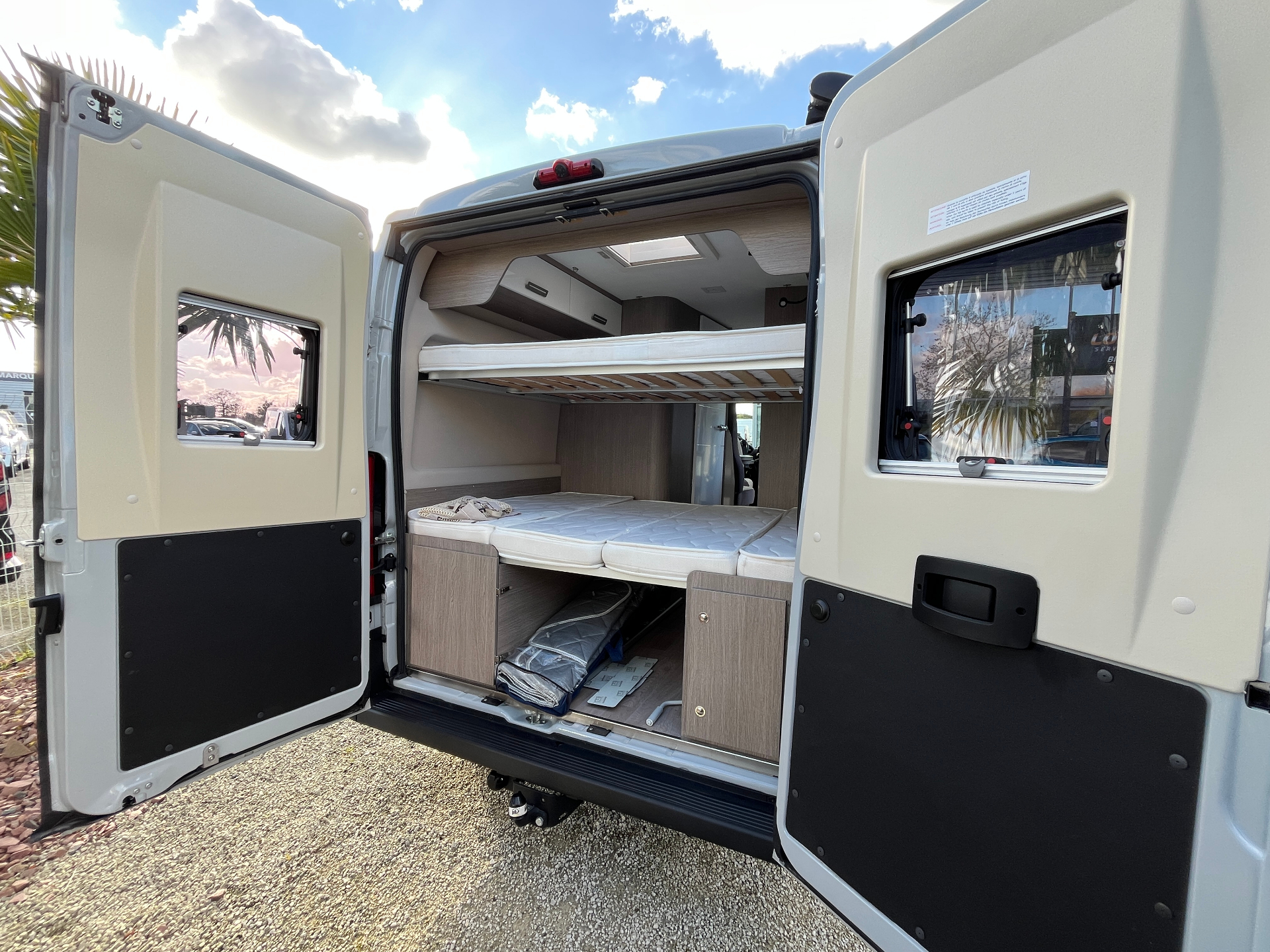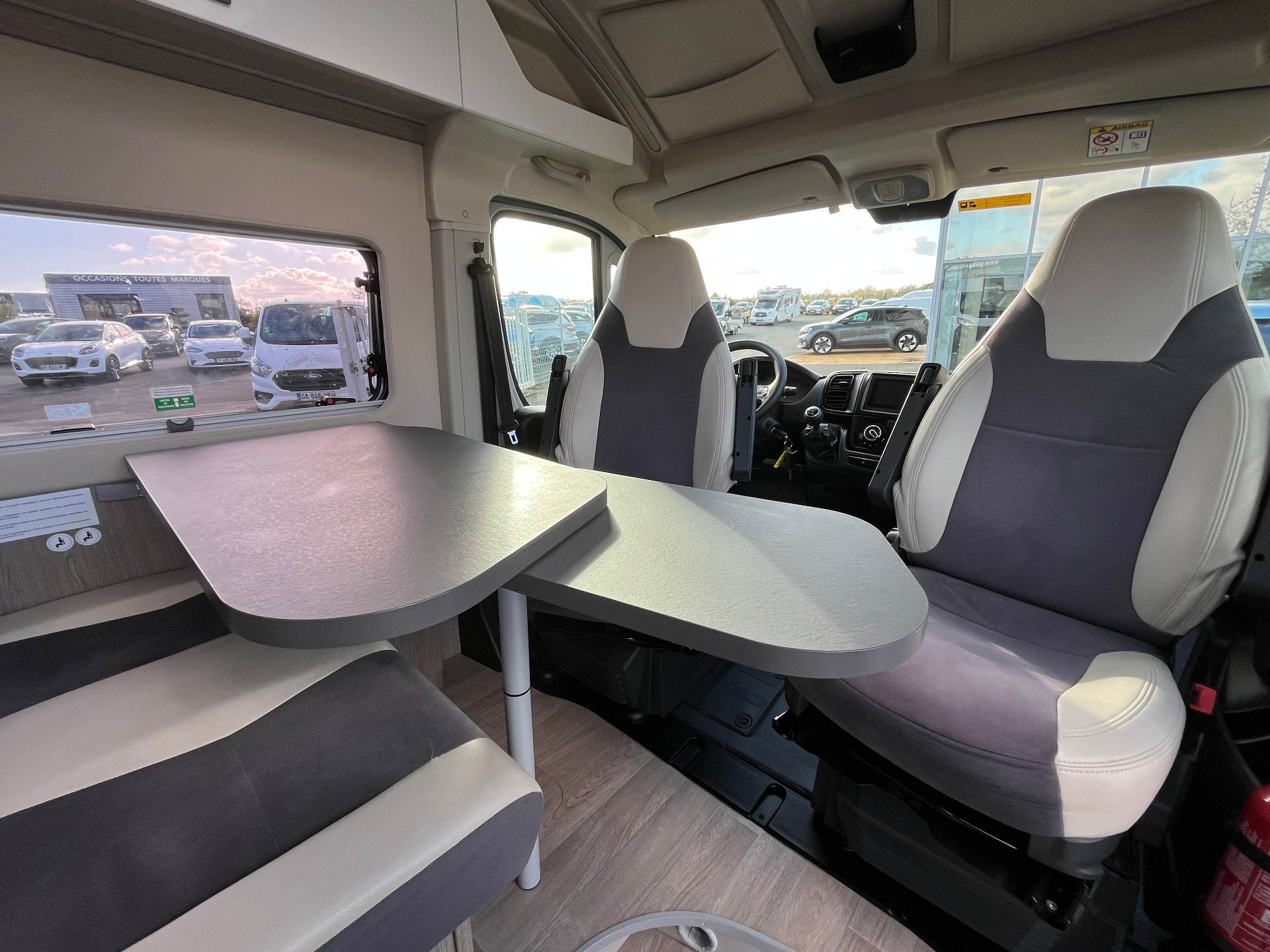 ABS + ESPFeux de jourClimatisation cabine manuelleÉclairage intérieur et extérieurDirection assistéeRétroviseurs réglables électriquement, rabattables manuellementRégulateur / Limiteur de vitesseCommandes audio & Bluetooth au volantVitres AV électriquesJantes alliage teintéesPrise USB + 12VTable centrale + rallonge intégréeStore extérieur THULEStores occultantsMoustiquaire de porte latérale coulissanteSalle de bain avec douche, WC cassette, lavabo, miroir et rangementsCuisine 2 feux gaz, évier inox et plaques de protectionRéfrigérateur 70L avec sécurité sur porteGrands tiroirs en cuisine / Rangements aditionnels diversLits superposés à l'arrièreMarchepied électriqueDécoration extérieure spécifique CHALLENGER V114 ROAD EDITION VIPPanneau de contrôle du véhicule au-dessus porte latérale coulissante4 places carte grise / 4 places couchage / 4 places repasDimensions (Longueur x largeur x hauteur) : 5,99 m x 2,05 m x 2,65 mMotorisation FIAT Ducato 2.2l 140 ch 140ch TurboBoîte de vitesses manuelle 6 rapportsSiège conducteur et siège passager pivotants