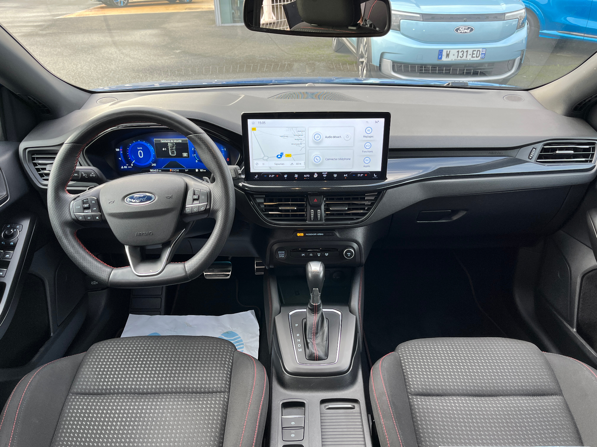 3 Modes de conduite selectionnables : Eco, Normal et SportAide au demarrage en coteAide au maintien dans la voieAide au stationnement AV/ARAllumage automatique des feuxBadges lateraux ST-LineBanquette AR rabattable 60/40Camera de reculCapteur de pression des pneus TPMSChargeur a inductionCiel de toit noirCombine d'instrumentalisation numerique 12.3"Controle de la temperature entierement automatique A/C (actionne via l'ecran tactile)Double sortie d'echappement sportEssuie-glace automatiquesFeux antibrouillard a LED avec eclairage d'anglesFeux AR a LEDFord KeyFree - acces et demarrage sans cleFordPass Connect - Modem embarque - Abonnement gratuit pendant 10 ansFrein de parking electriqueFreinage automatique post-collisionGrille de calandre noire ST-LineJantes alliage 17" 5 branchesKit Carrosserie ST-LineLumiere d'ambiancePack StylePhares a reflecteur a LEDRegulateur de vitesse avec limiteur intelligentRetroviseurs ex.chauffants, reglables et rabattables electriquement couleurs carrosserieSellerie Tissu specifique ST-Line avec surpiqures rougesSiege conducteur reglable en hauteur avec reglage lombaireSysteme de prevention de collision avec detection de pietons et cyclistesSysteme multimedia Ford SYNC 4 avec navigation, commande vocale, DAB et ecran tactile 13"Vitres AR surteinteesVitres AV et AR electriquesVolant ST-3 branches en Sensico, base plate avec surpiqures rougesFonction Androïd Auto & Apple Carplay sans fil