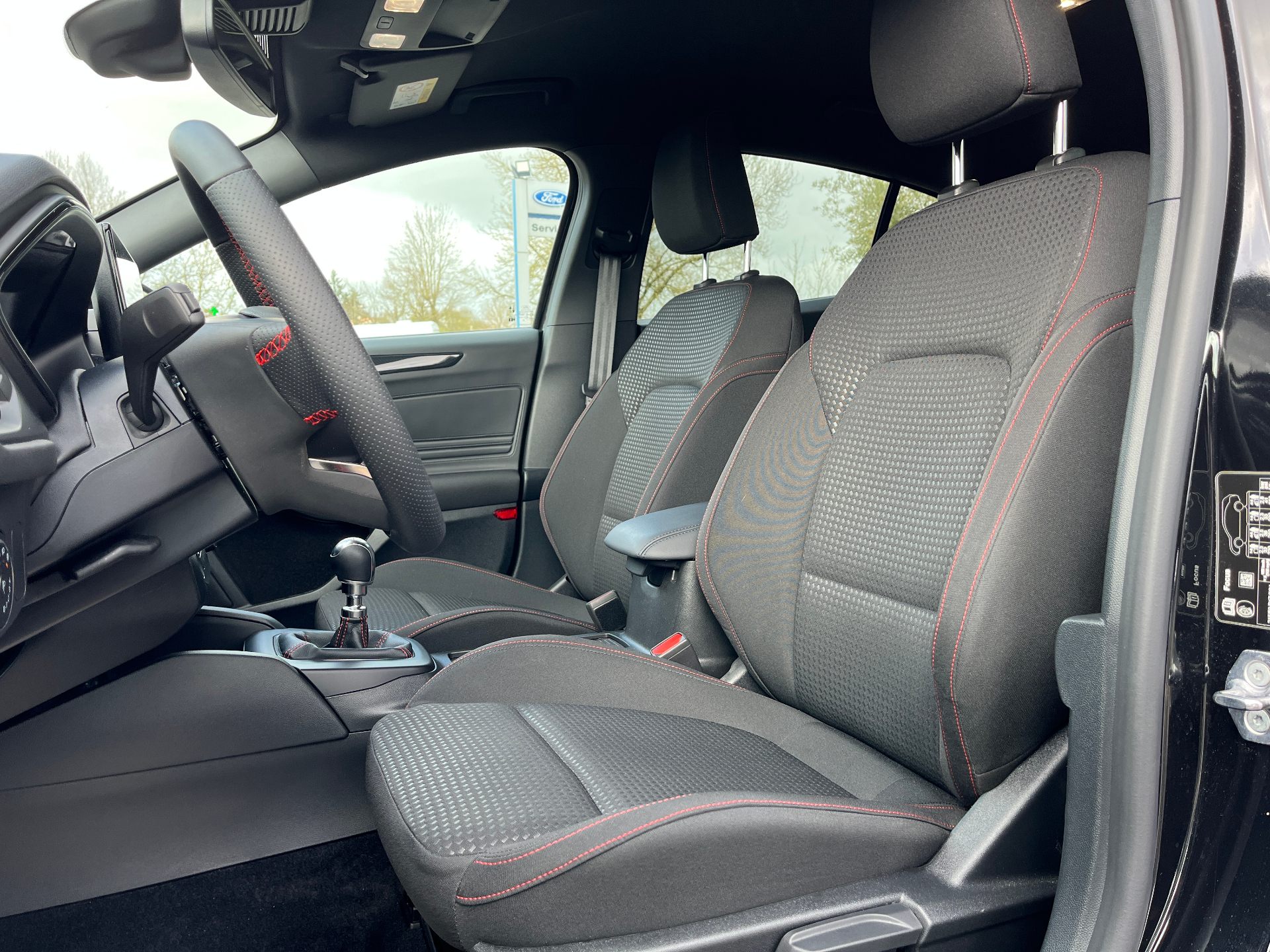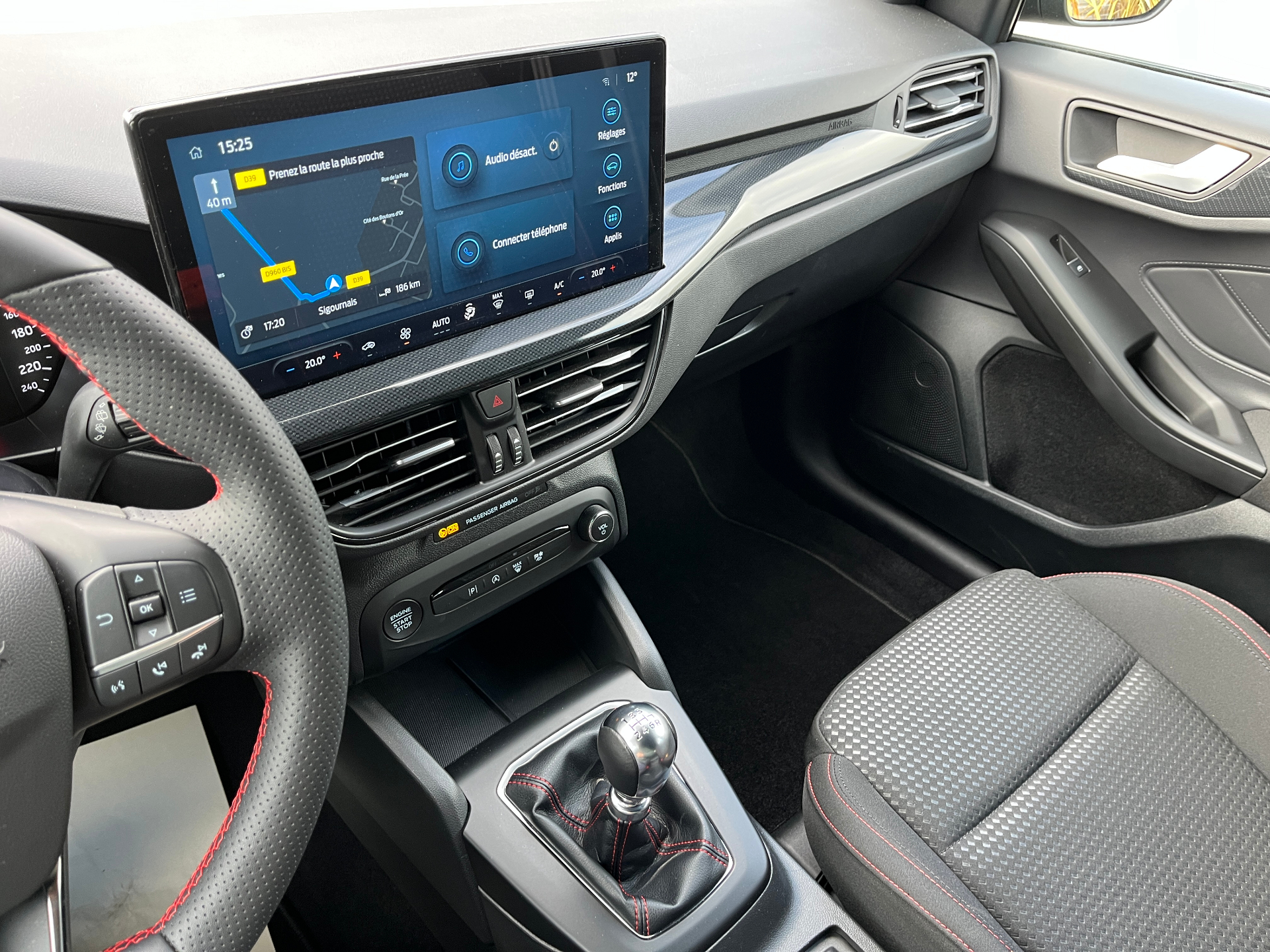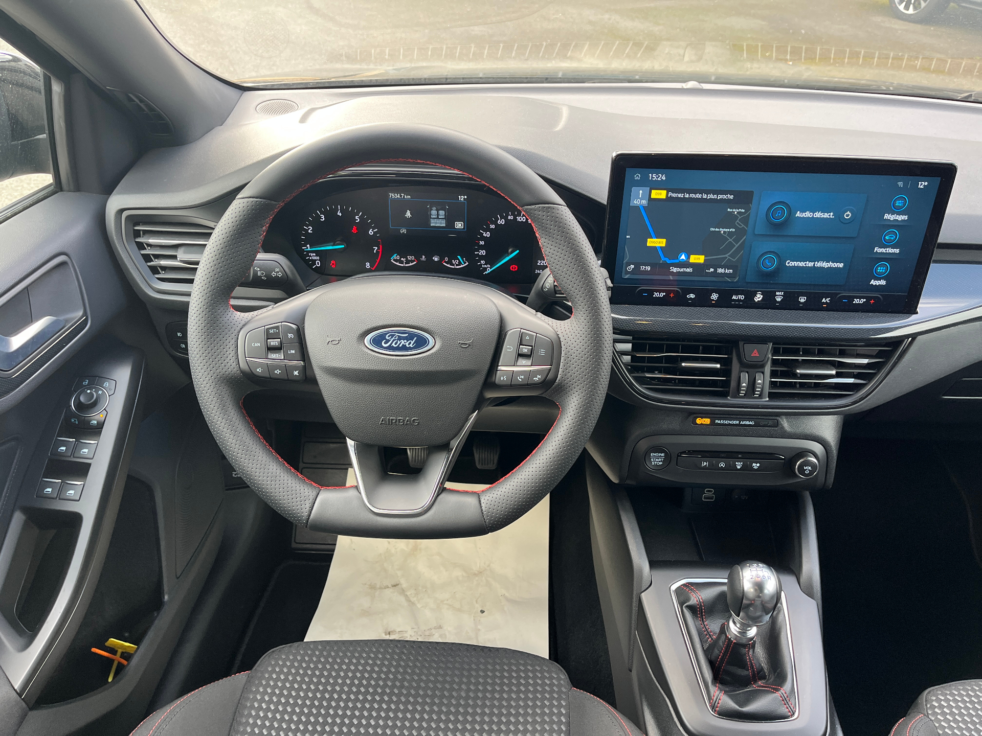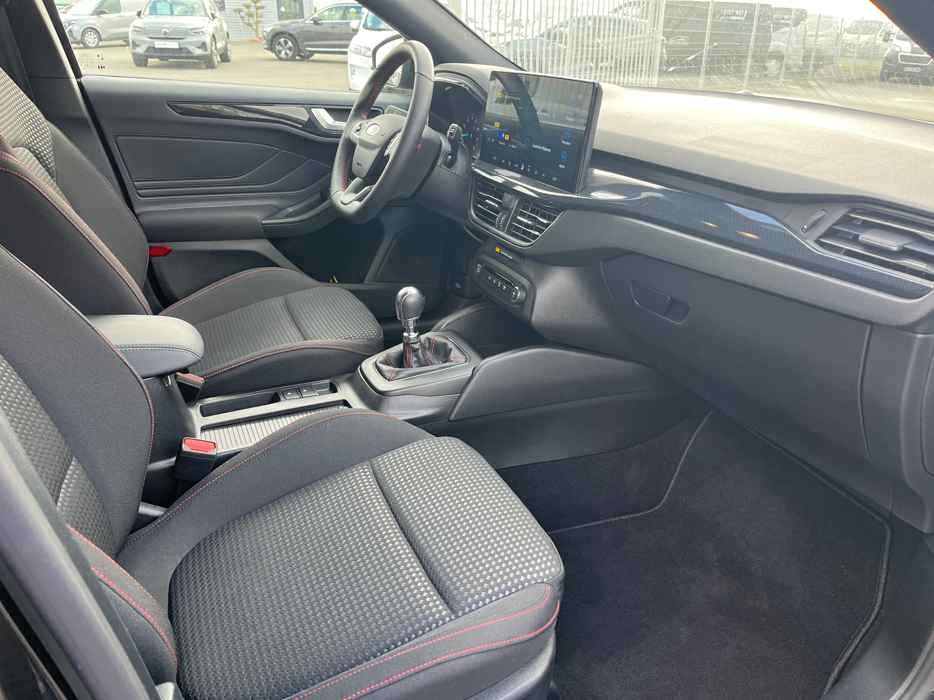 3 Modes de conduite selectionnables : Eco, Normal et SportSystème navigation GPSSystème démarrage sans cléAide au demarrage en coteAide au maintien dans la voieAide au stationnement AV/ARAlerte de baisse de vigilance du conducteurAllumage automatique des feuxAssistant d'urgence (via telephone connecte)Badges lateraux ST-LineBanquette AR rabattable 60/40 avec trappe a skiCamera de reculCapteur de pression des pneus TPMSCombine d'instrumentalisation numerique 12.3"Console centrale avec porte-gobelets et accoudoirControle de la temperature entierement automatique A/C (actionne via l'ecran tactile)Double sortie d'echappement sportEssuie-glace automatiquesFeux antibrouillard a LED avec eclairage d'anglesFordPass Connect - Modem embarque - Abonnement gratuit pendant 10 ansFrein de parking electriqueFreinage automatique post-collisionGrille de calandre noire ST-LineJantes alliage 17" 5 branchesJoncs de vitres laterales noirsKit Carrosserie ST-LineLumiere d'ambiance a LEDPhares a LED et feux AR a LEDPommeau de levier de vitesse Sensico /chromeRegulateur de vitesse avec limiteur intelligentRetroviseur electrochromiqueRetroviseurs ex.chauffants, reglables et rabattables electriquement couleurs carrosserieSellerie Tissu specifique ST-Line avec surpiqures rougesSiege conducteur reglable en hauteur avec reglage lombaireSysteme de prevention de collision avec detection de pietons et cyclistesSysteme multimedia Ford SYNC 4 avec navigation, commande vocale, assistant Alexa, DABVitres AR surteinteesVitres AV et AR electriquesVolant ST-3 branches en Sensico, base plate avec surpiqures rouges