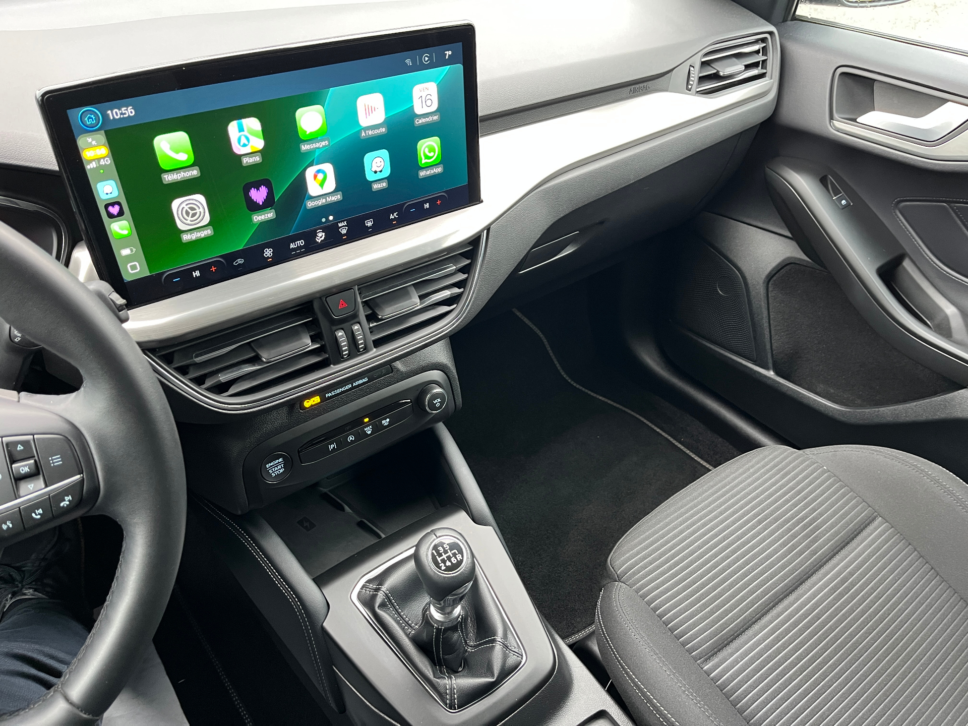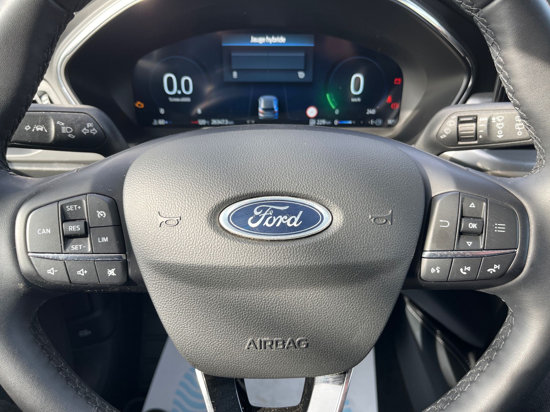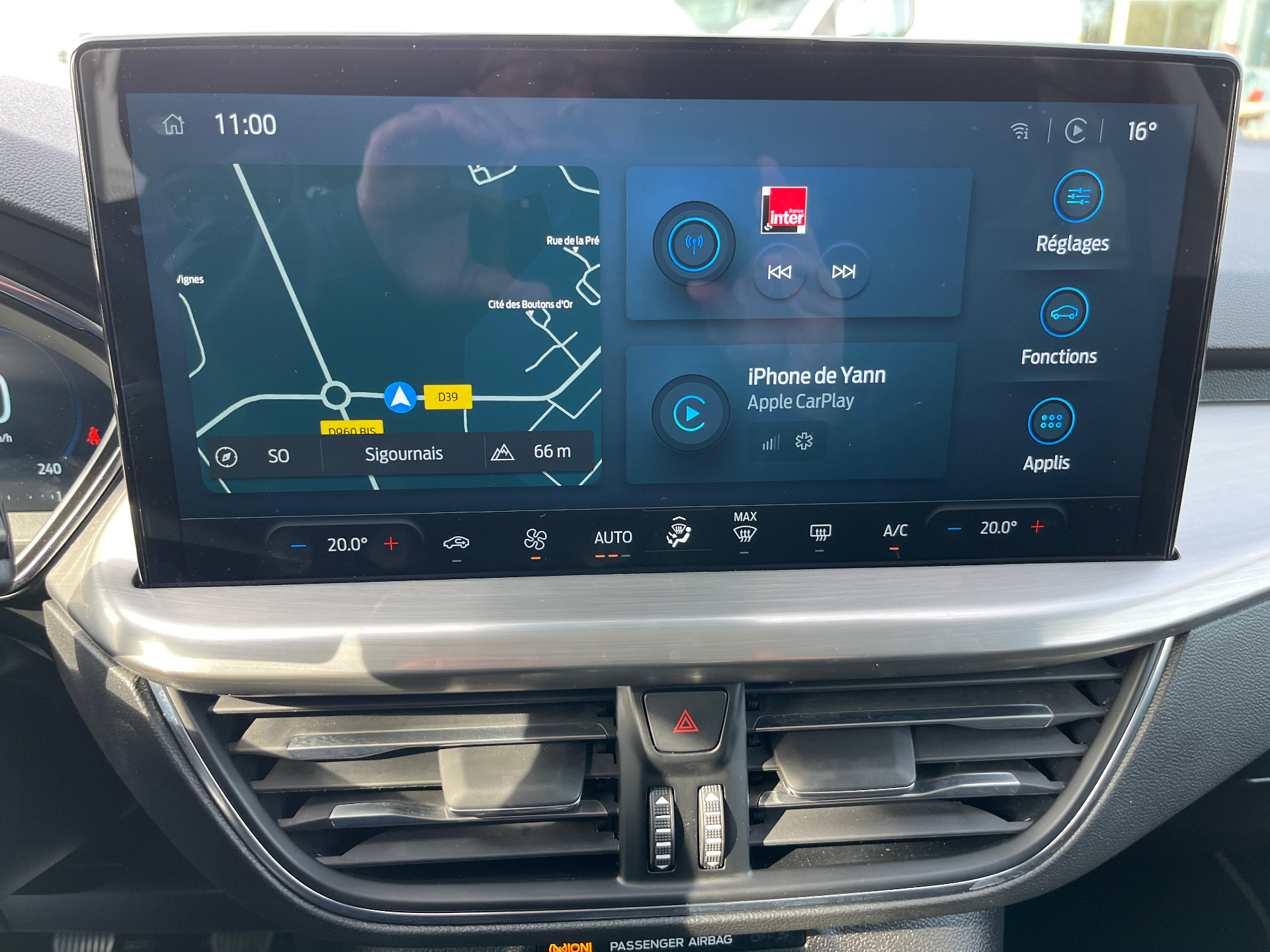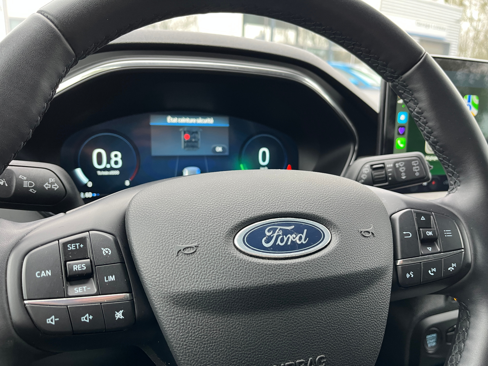 2 ports USB a l'AR (type C)3 Modes de conduite selectionnables : Eco, Normal et Sport3eme appui-tete ARAccoudoir central AR avec espace de rangementAide au demarrage en coteAide au maintien dans la voieAide au stationnement AV/ARAirbags laterauxAirbags rideauxAlerte de baisse de vigilance du conducteurAllumage automatique des feuxAssistant d'urgence (via telephone connecte)Banquette AR rabattable 60/40 avec trappe a skiBecquet couleur carrosserieCamera de reculCapteur de pression des pneus TPMSChargeur a inductionCiel de toit grisCombine d'instrumentalisation numerique 12.3"Console centrale avec porte-gobelets et accoudoirControle de la temperature entierement automatique A/C (actionne via l'ecran tactile)ESPEssuie-glace automatiquesFeux antibrouillard avec eclairage d'anglesFord KeyFree - acces et demarrage sans cleFordPass Connect - Modem embarque - Abonnement gratuit pendant 10 ansFrein de parking electriqueFreinage automatique post-collisionGrille de calandre Titanium chromeeJoncs de vitres laterales chromesLampes de lecture LED AV/ARLumiere d'ambiance a LEDNavigation Connectee (1 an offert)Pack StylePare-chocs AR couleur carrosseriePare-chocs AV couleur carrosseriePeinture non metallisee Rouge RacingPhares a LED et feux AR a LEDRegulateur de vitesse avec limiteur intelligentRetroviseur electrochromiqueRetroviseurs ex.chauffants, reglables et rabattables electriquement couleurs carrosserieSellerie Tissu TitaniumSiege conducteur reglable en hauteur avec reglage lombaireSysteme de prevention de collision avec detection de pietons et cyclistesSysteme multimedia Ford SYNC 4 avec navigation, commande vocale, assistant Alexa, DABVitres AR surteinteesVitres AV et AR electriquesVolant 3 branches Sensico