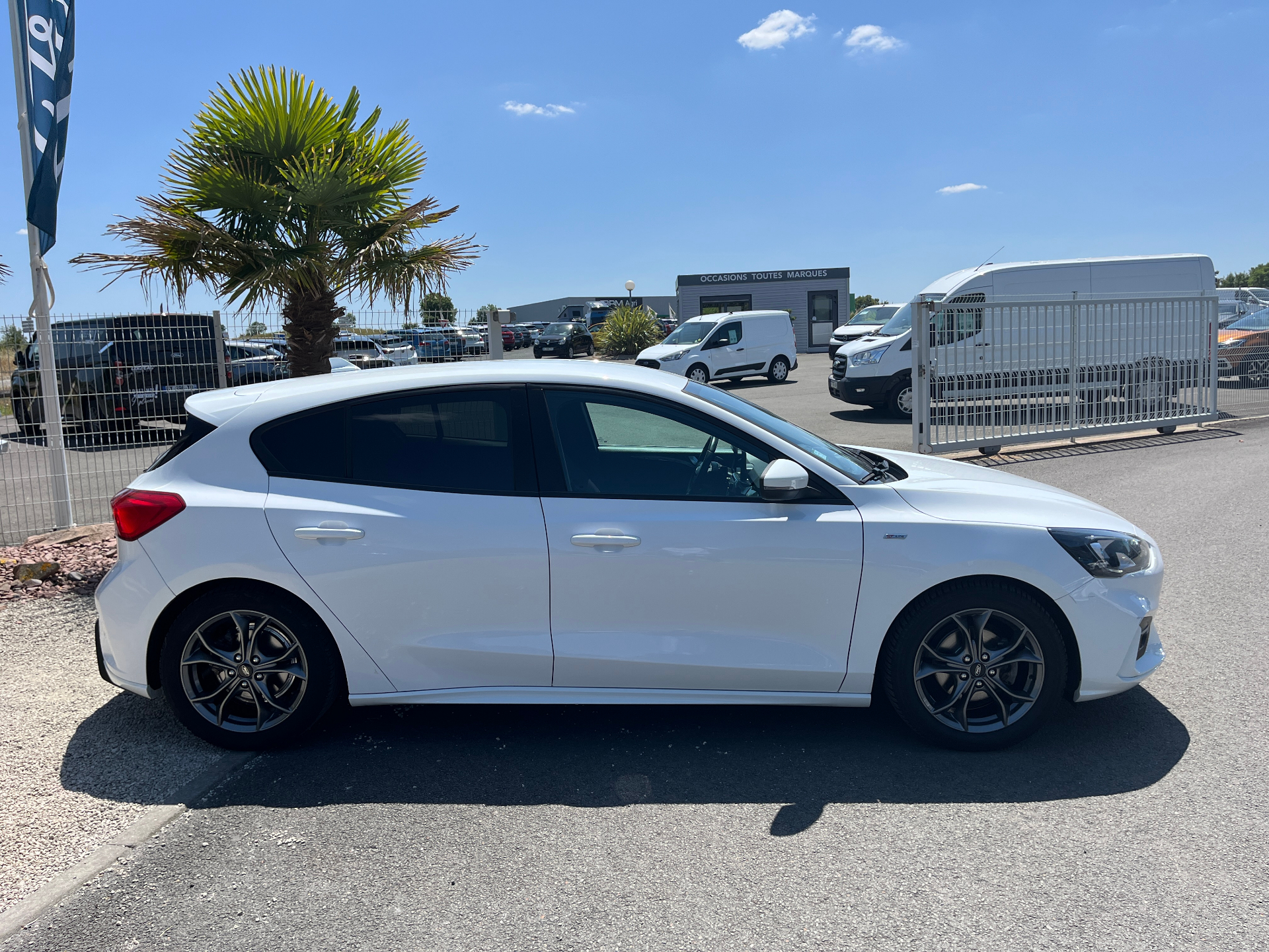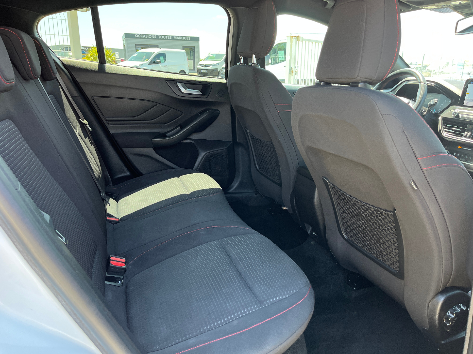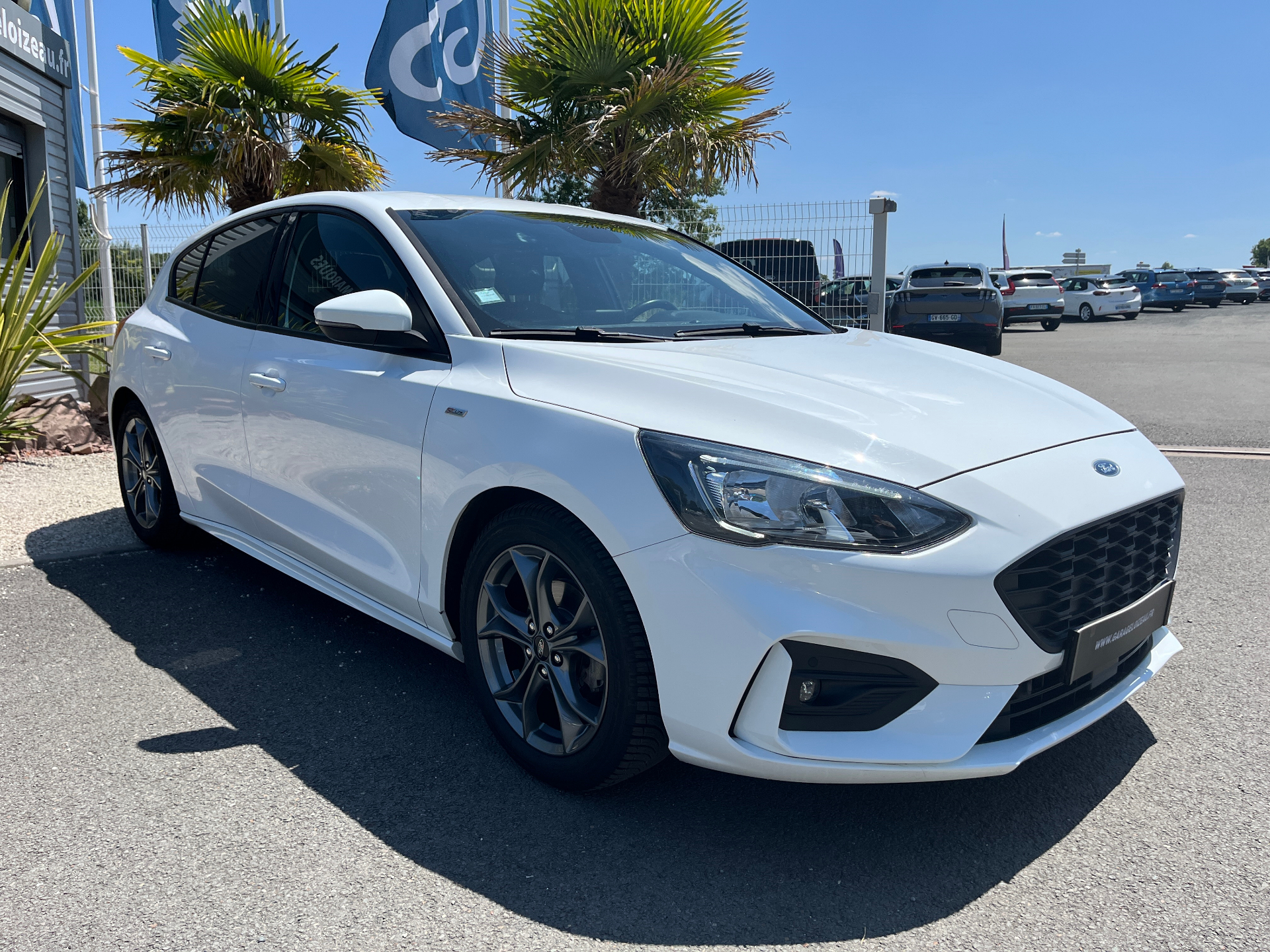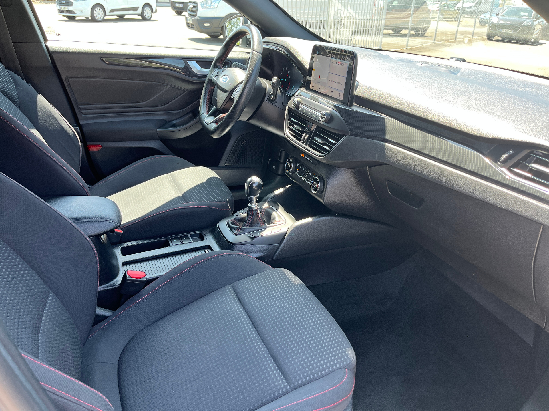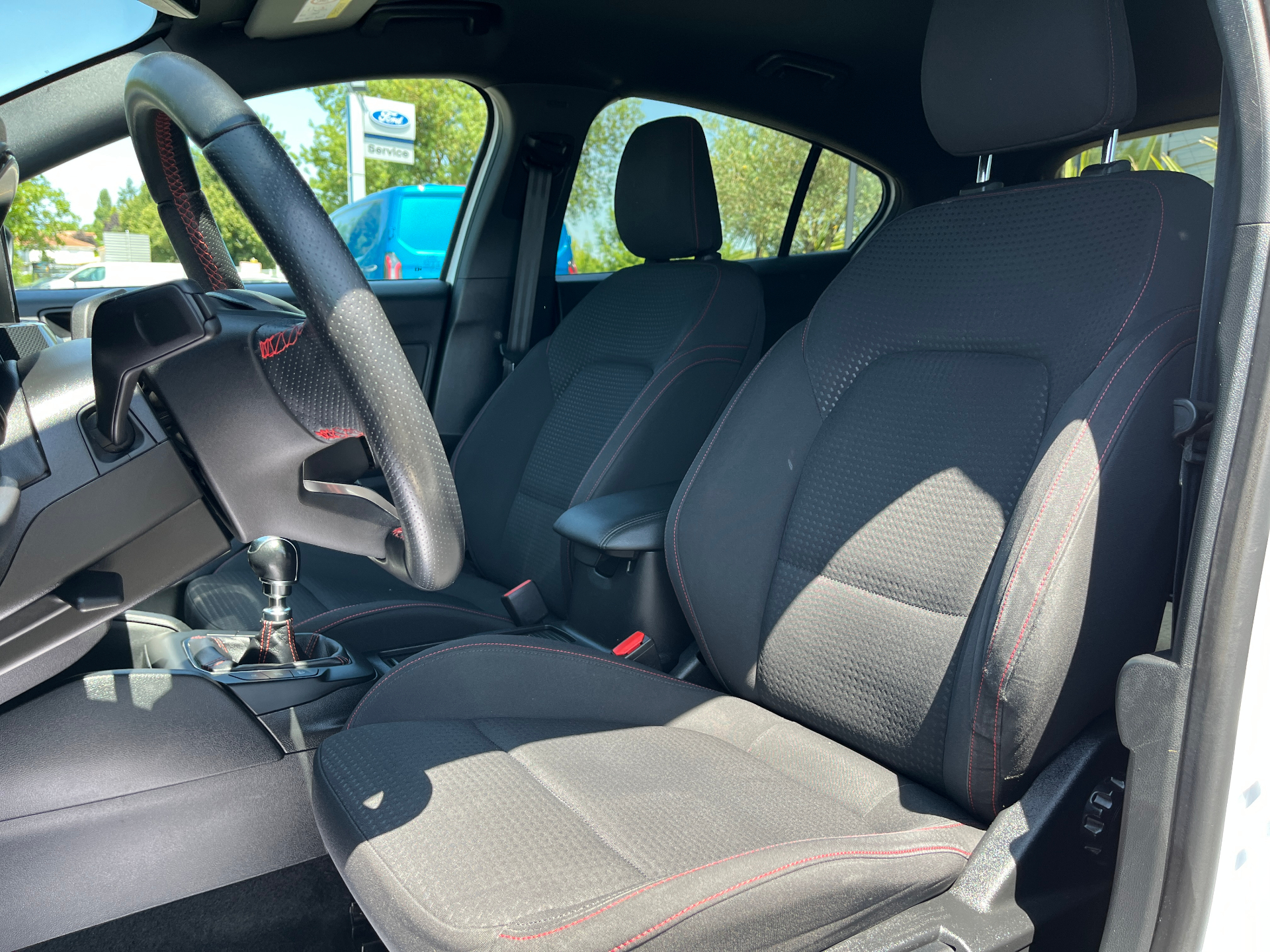 3 Modes de conduite selectionnables : Eco, Normal et SportAide au demarrage en coteAide au maintien dans la voieAide au stationnement AV/ARAllumage automatique des feuxCapteur de pression des pneus TPMSDouble sortie d'echappement sportFeux antibrouillard avec eclairage d'anglesFeux de jour a LEDFrein de parking electriqueJantes alliage 17" ST-Line - 5x2 branchesKit Carrosserie ST-LineLampes de lecture LED AV/AROrdinateur de bord 4.2" monochromePeinture non metallisee Blanc GlacierPlaques de seuil de portes avec logo ST-LinePommeau de levier de vitesse exclusifs ST-LineRegulateur de vitesse avec limiteur intelligentRetroviseurs exterieurs chauffants, reglables et rabattables electriquement couleurs carrosserieSellerie Tissu specifique ST-Line avec surpiqures rougesSysteme de prevention de collision avec detection de pietons et cyclistesSysteme multimedia Ford SYNC 2.5 avec Android Auto/Apple Car playVitres AV et AR electriquesVolant cuir a me-plat exclusif ST-Line