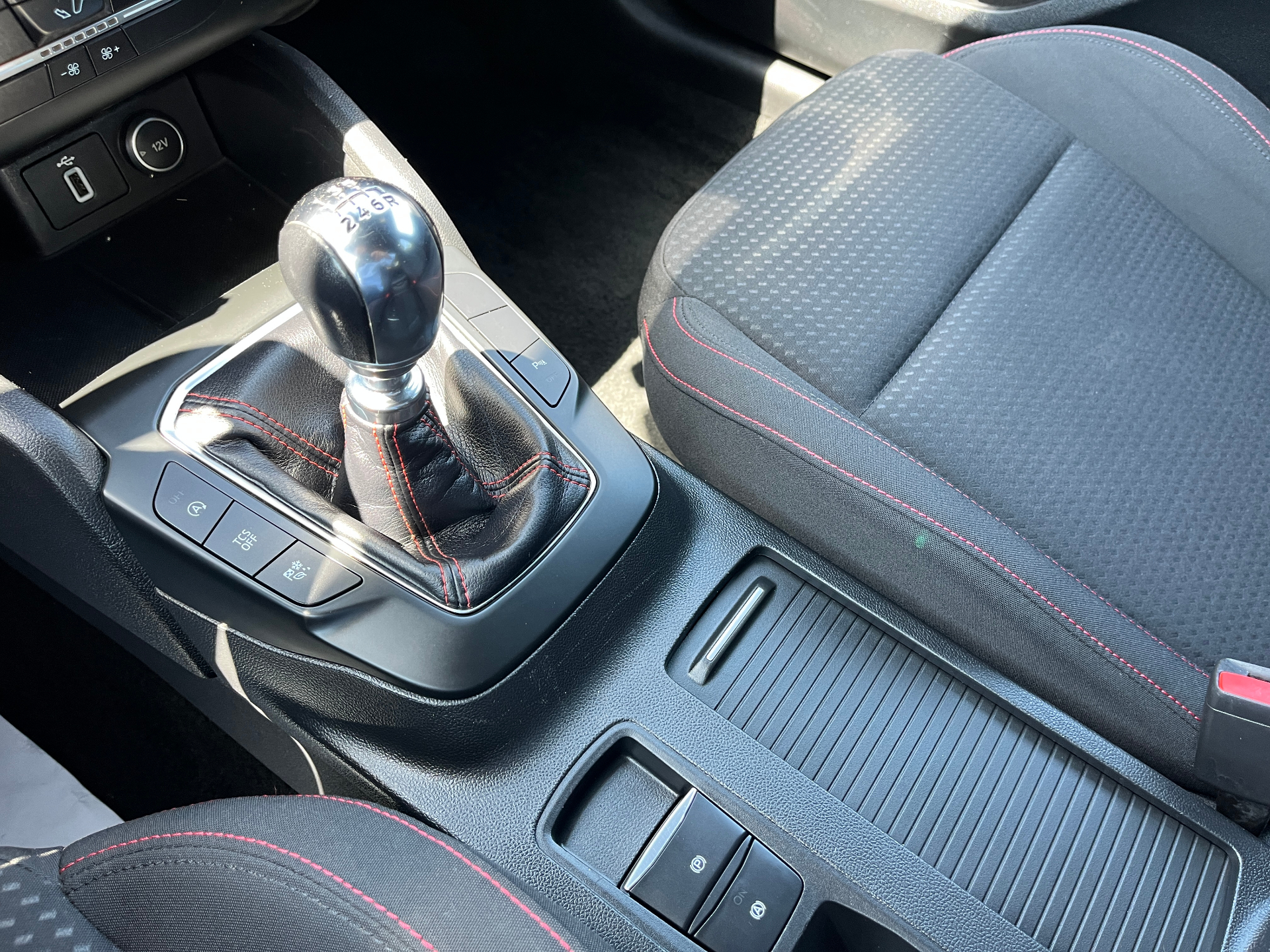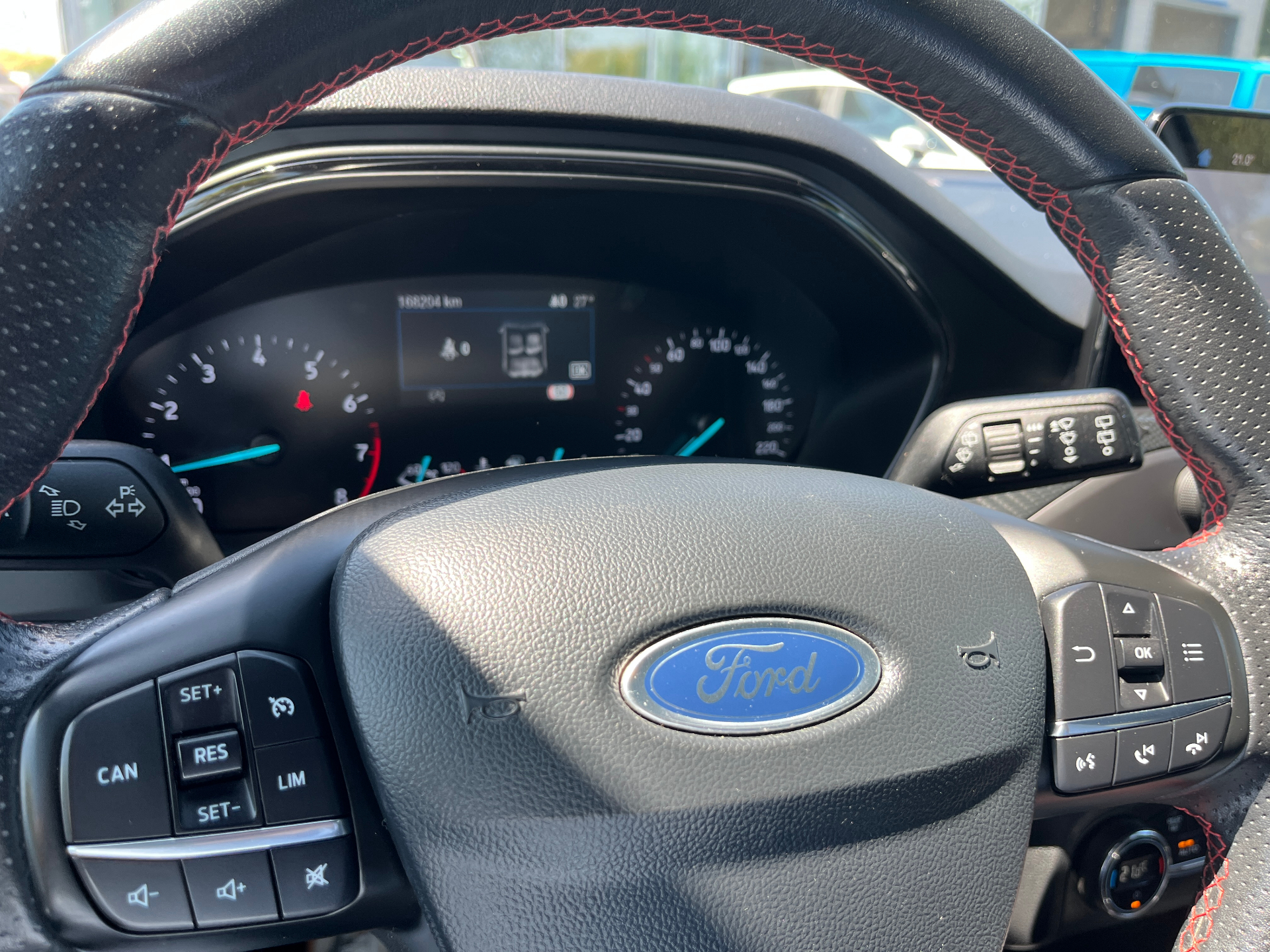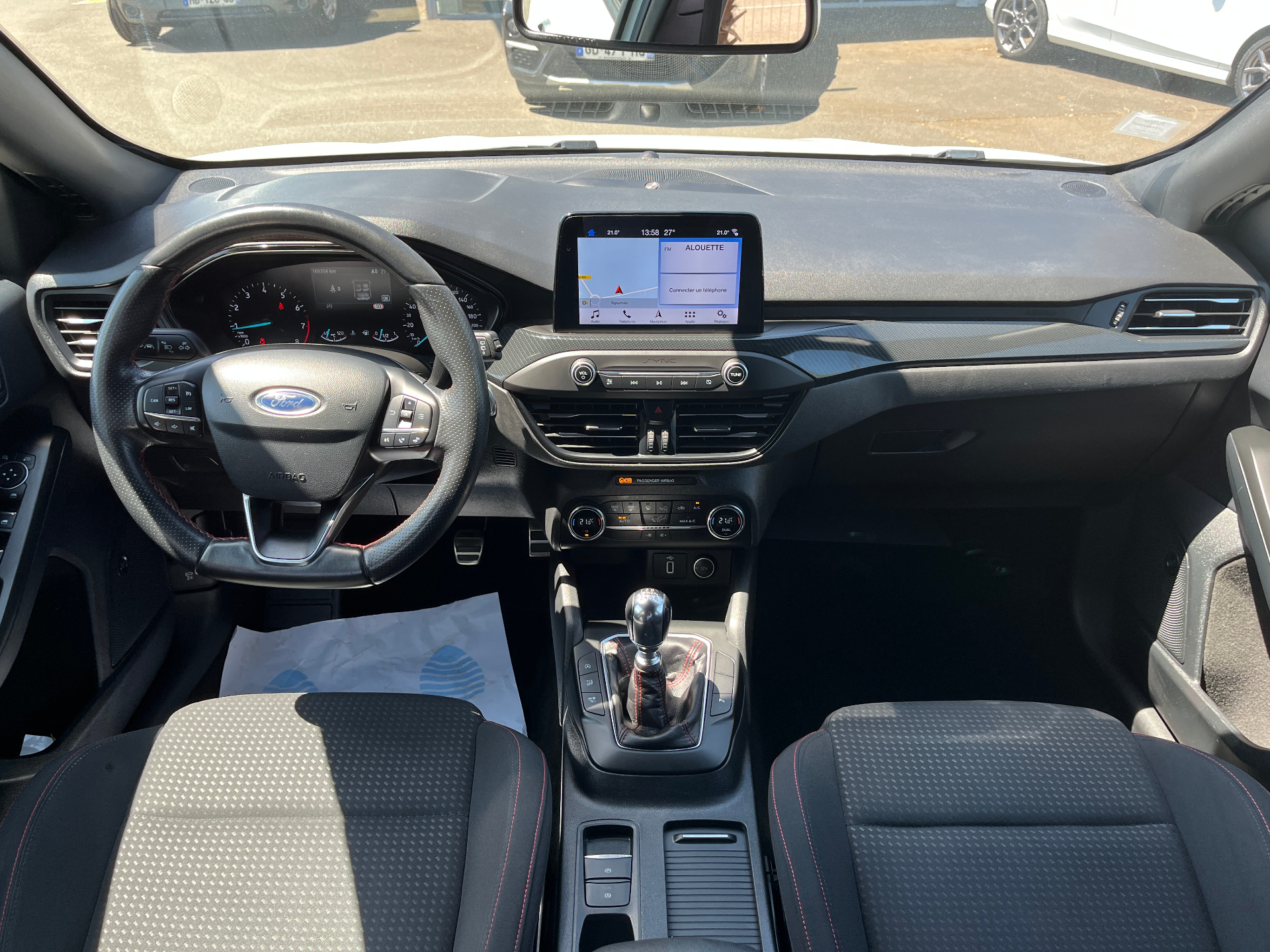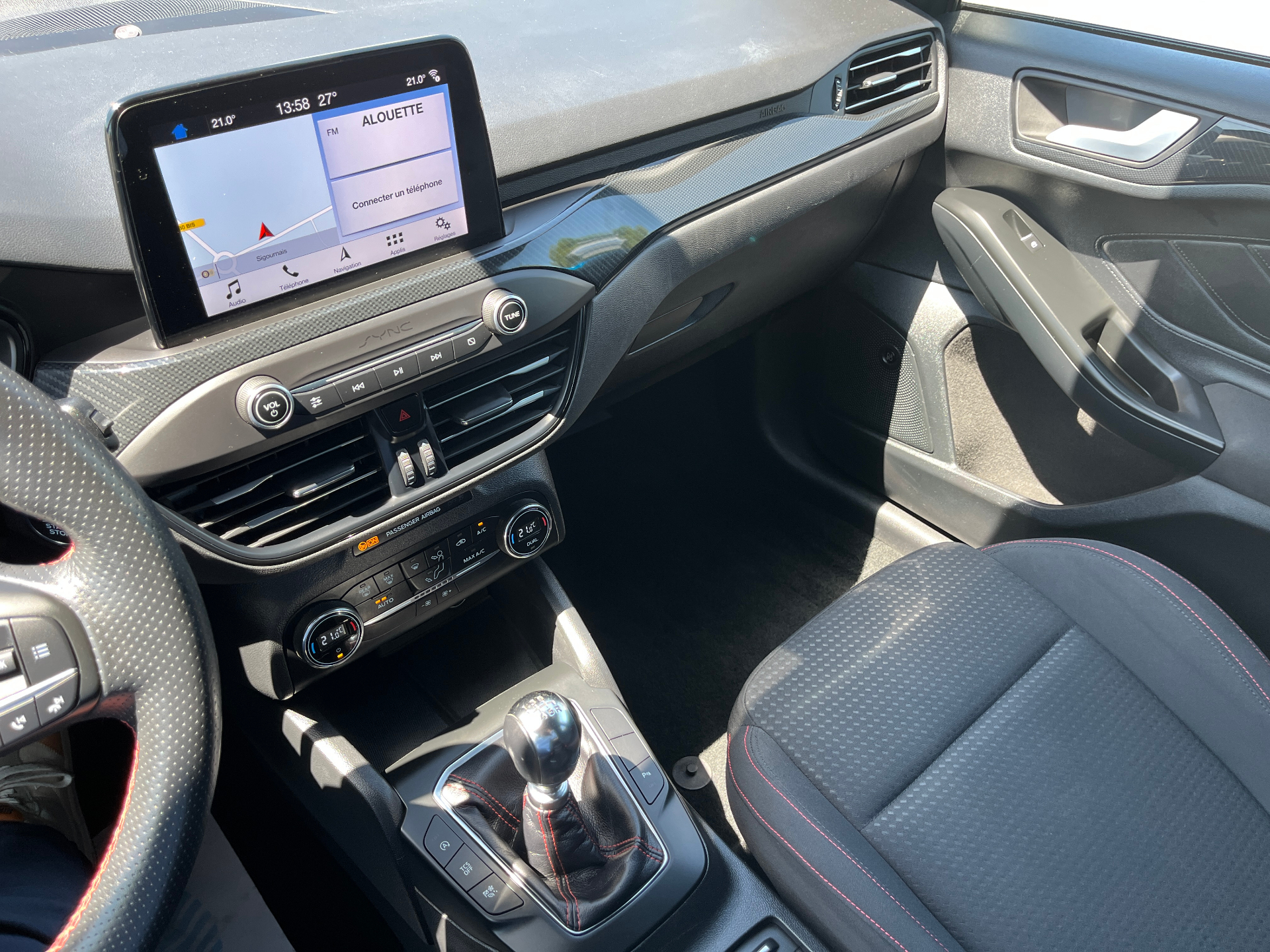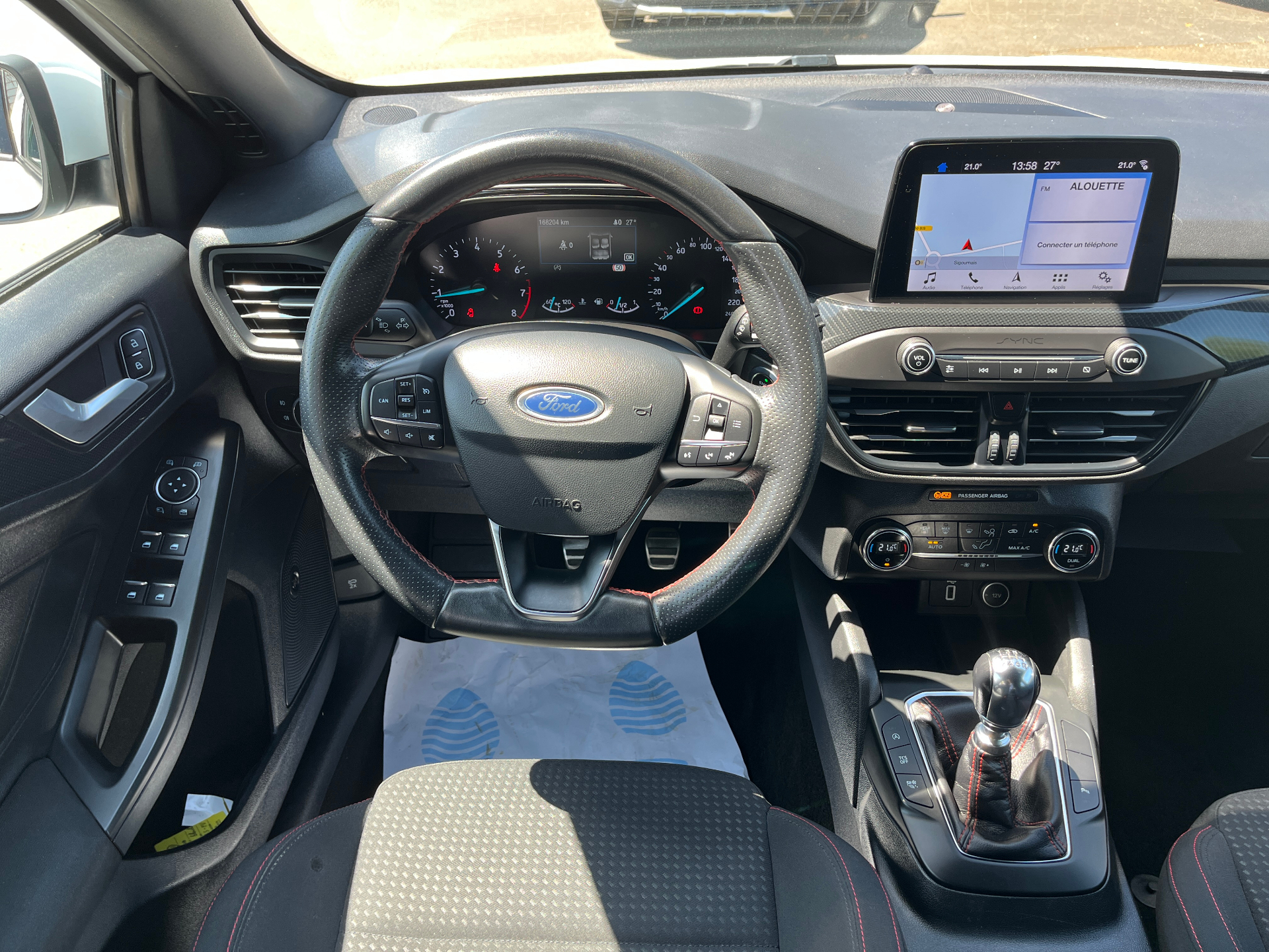 3 Modes de conduite selectionnables : Eco, Normal et SportAide au demarrage en coteAide au maintien dans la voieAide au stationnement AV/ARAllumage automatique des feuxCapteur de pression des pneus TPMSDouble sortie d'echappement sportFeux antibrouillard avec eclairage d'anglesFeux de jour a LEDFrein de parking electriqueJantes alliage 17" ST-Line - 5x2 branchesKit Carrosserie ST-LineLampes de lecture LED AV/AROrdinateur de bord 4.2" monochromePeinture non metallisee Blanc GlacierPlaques de seuil de portes avec logo ST-LinePommeau de levier de vitesse exclusifs ST-LineRegulateur de vitesse avec limiteur intelligentRetroviseurs exterieurs chauffants, reglables et rabattables electriquement couleurs carrosserieSellerie Tissu specifique ST-Line avec surpiqures rougesSysteme de prevention de collision avec detection de pietons et cyclistesSysteme multimedia Ford SYNC 2.5 avec Android Auto/Apple Car playVitres AV et AR electriquesVolant cuir a me-plat exclusif ST-Line