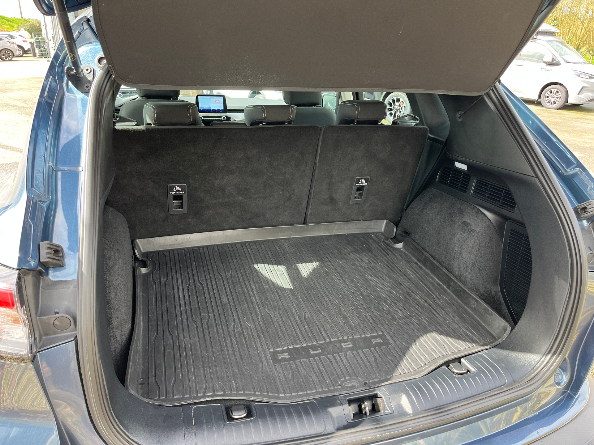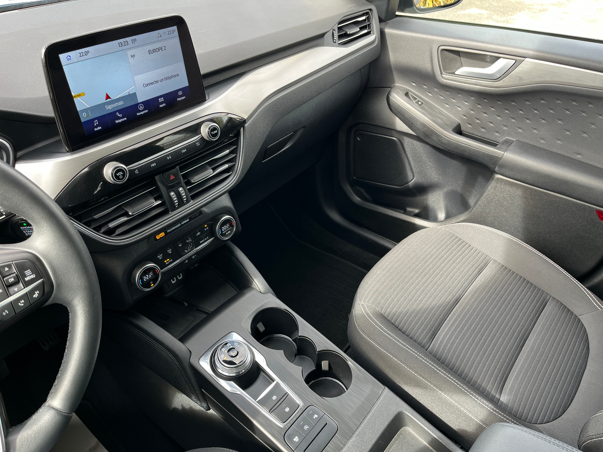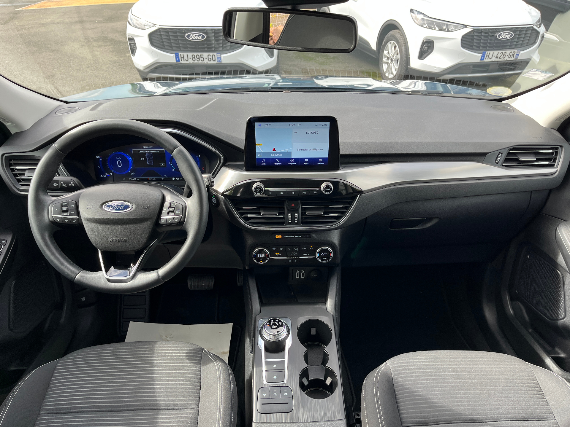 2 Fixations ISOFIX aux places ARFonction Apple Carplay & Androïd Auto5 Modes de conduite selectionnables (normal, eco, sport, faible adherence, piste)Aide au demarrage en coteAide au maintien dans la voie avec avertisseur de franchissement de ligneAide au stationnement AV/ARAir conditionne automatique bizoneAirbags frontaux, lateraux (thorax) et rideauxAllumage automatique des essuie-glacesAllumage automatique des feuxBanquette AR coulissante rabattable (60/40)Barres de toit en aluminiumBouton de demarrage "Ford Power"Camera AR 180°Combine d'instrumentalisation numerique 12.3" avec EcomodeConsole centrale avec accoudoir avec 2 prises USBCorrecteur electronique de trajectoire (ESP)Double sortie d'echappementE-shifter (le selecteur de vitesses rotatif electronique)Eclairage d'ambiance interieurFeux de jour AV et AR a LEDFordPass Connect avec modem embarque 4 et fonction eCallFrein de stationnement electriqueGrille de calandre TitaniumJantes alliage 17" 10 branches finition Titanium avec pneus 225/65 R17Phares halogenes avec projecteur LED sur feux de croisementsPlancher de coffre ajustableRecharge de telephone par inductionRegulateur de vitesseRetroviseur interieur electrochromeRetroviseurs exterieurs couleur carrosserie electriques, chauffants et rabattables avec eclairageSecurite enfant (verrouillage manuel des portes AR)Sellerie tissu noir Ray avec renforts lateraux EtonSiege conducteur reglable en hauteur avec soutien lombaire (8 positions)Siege passager reglable en hauteur avec soutien lombaire (8 positions)Systeme audio bi-tuner AM/FM Ford SYNC3, avec ecran tactile 8", DAB, commandes vocales, 2 ports USB,Systeme de navigation Europe et points d'interets MichelinSysteme de prevention de collision avec detection de pietonsSysteme de surveillance de la pression des pneusSysteme KeyFree avec ouverture et demarrage sans cleVerrouillage centralise a distanceVitres AV et AR electriques