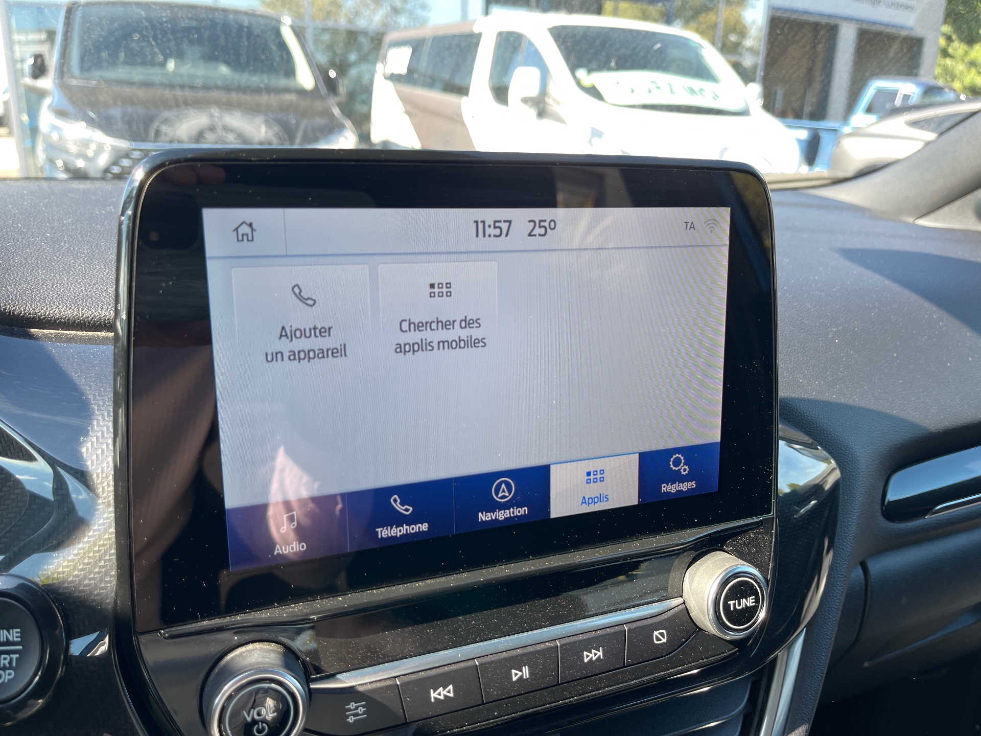 2 Fixations ISOFIX aux places ARFonction Apple Carplay & Androïd Auto5 Modes de conduite selectionnables (normal, eco, sport, faible adherence, trail)Aide au demarrage en coteAide au maintien dans la voie avec detection des bas-cotesAide au stationnement ARAir conditionne manuelAirbags frontaux, lateraux (thorax) et rideauxAlerte de ceinture de securite AV/ARAlerte de franchissement involontaire de ligneAllumage automatique des feuxBadges exterieurs ST-LineBanquette AR rabattable 60/40Bouton de demarrage "Ford Power"Combine d'instrumentation numerique 12.3" avec EcomodeConsole centrale avec accoudoir et rangementsCorrecteur electronique de trajectoire (ESP)Desactivation de l'airbag passagerFeux AR a LEDFeux de jour a LEDFeux de route intelligents - Commutation automatique des feux de route aux feux de croisementFordPass Connect avec modem embarque et fonction E-CallJantes alliage 17" 5x2 branches finition Black Machined (pour pneus toutes saisons 215/55 R17)Kit de carrosserie ST-LineKit de reparation pneumatiqueLimiteur de vitesse intelligent (affichage instantane des limitations de vitesse sur le tableau deNavigation avec Systeme audio Ford SYNC3 avec ecran tactile 8", commandes vocales, 2 ports USB,Phares antibrouillard AV avec fonction eclairage des anglesReconnaissance des panneaux de signalisationRegulateur de vitesseRetroviseurs exterieurs couleur carrosserie electriques, degivrants et rabattables electriquementSellerie tissu noir Court avec surpiqures rougesSiege conducteur a reglage manuelle en hauteur avec soutien lombaireSortie d'echappement chromeeSysteme de prevention de collision avec freinage post-collision et detection pietonsSysteme de surveillance de la pression des pneusTapis de sol AV avec surpiquresVitres AV/AR electriques a impulsion haut/basVolant a meplat 3 branches ST-Line avec surpiqures rouges