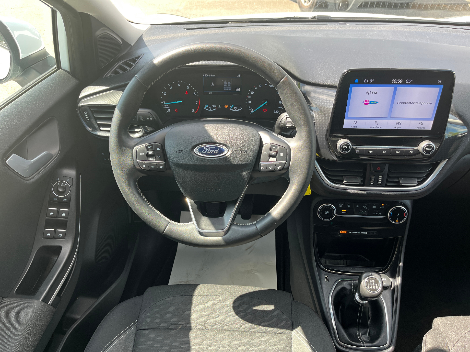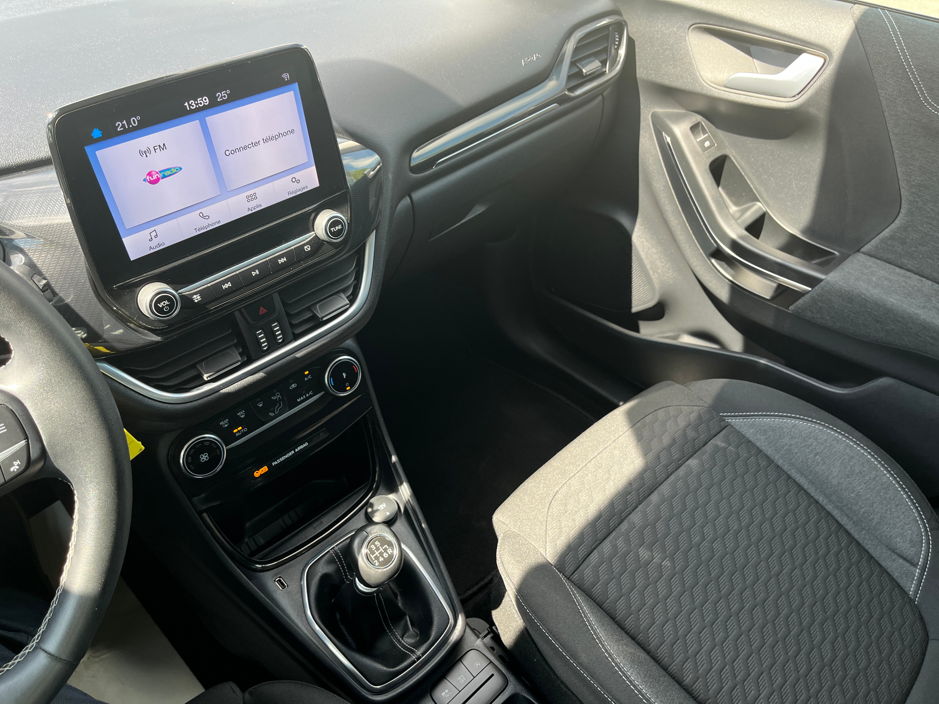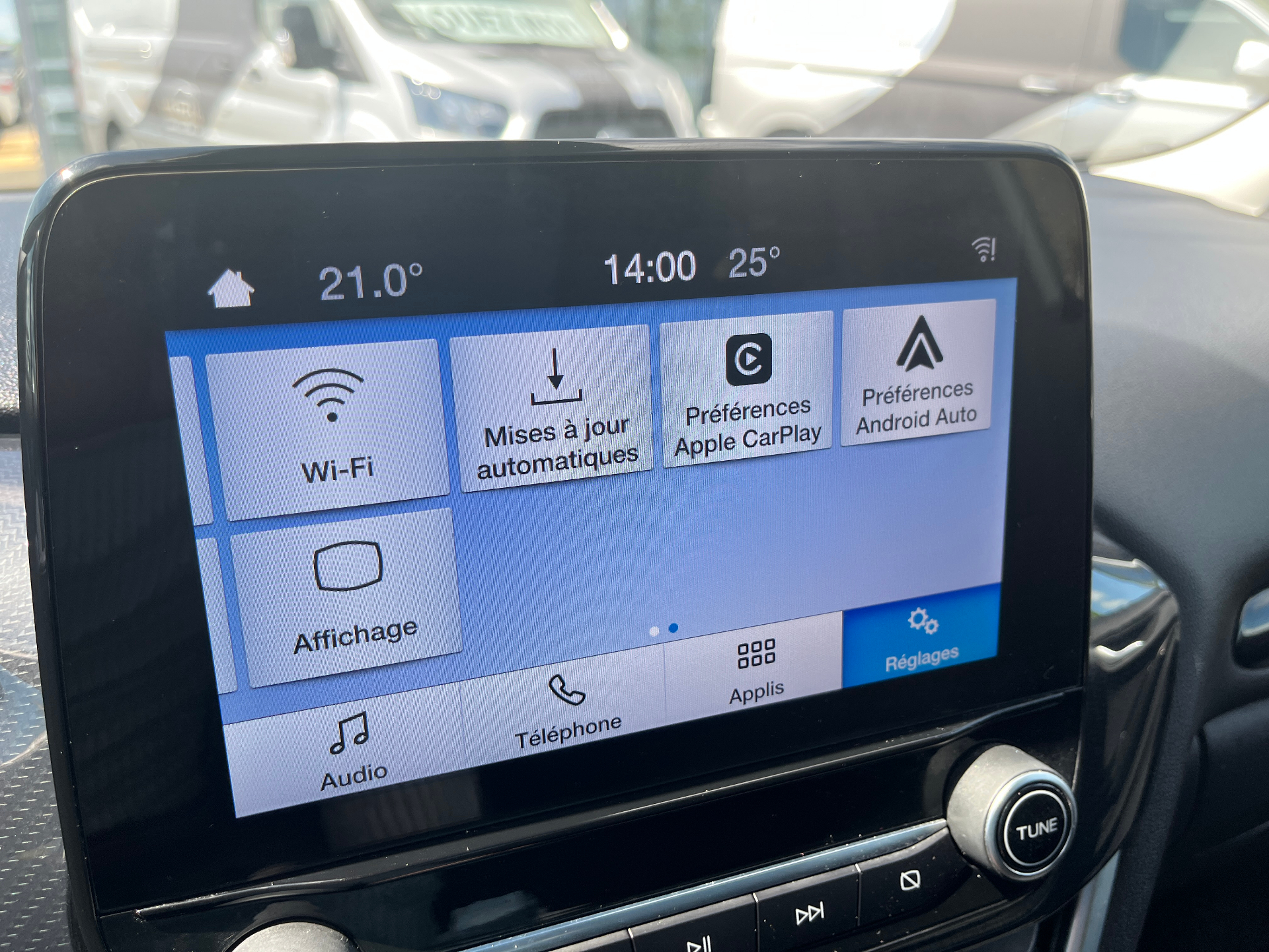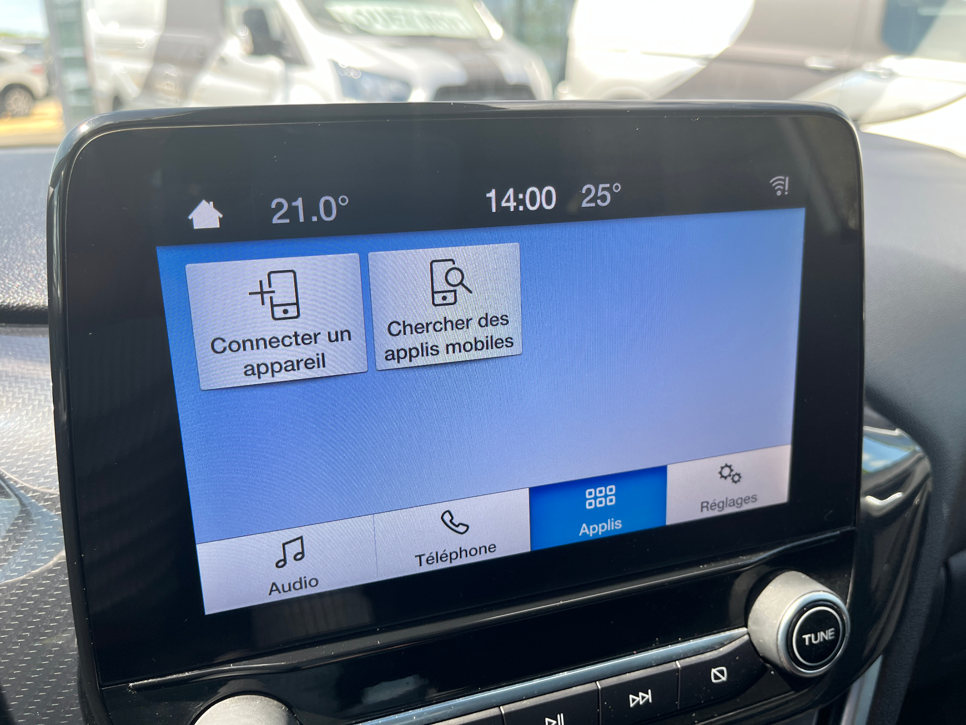 2 Fixations ISOFIX aux places ARFonction Apple Carplay & Androïd Auto5 Modes de conduite selectionnables (normal, eco, sport, faible adherence, trail)Aide au demarrage en coteAide au maintien dans la voie avec detection des bas-cotesAide au stationnement ARAirbags frontaux, lateraux (thorax) et rideauxAlerte de ceinture de securite AV/ARAlerte de franchissement involontaire de ligneAllumage automatique des feuxBanquette AR rabattable 60/40Combine d'instrumentation TFT couleur 4.2" avec EcomodeConsole centrale avec accoudoir et rangementsCorrecteur electronique de trajectoire (ESP)Desactivation de l'airbag passagerDirection assistee electriqueFeux AR a LEDFeux de jour a LEDFeux de route intelligents - Commutation automatique des feux de route aux feux de croisementFordPass Connect avec modem embarque et fonction E-CallGrille de calandre avec barres horizontales et contour finition chromeeKit de reparation pneumatiqueLevier de frein a main SensicoLevier de vitesse SensicoLimiteur de vitesse intelligent (affichage instantane des limitations de vitesse sur le tableau dePhares antibrouillard AV avec fonction eclairage des anglesReconnaissance des panneaux de signalisationRegulateur de vitesseRetroviseurs exterieurs couleur carrosserie electriques, degivrants et rabattables electriquementSellerie tissu noir KasbahSiege conducteur reglable en hauteur avec soutien lombaireSysteme audio Ford SYNC3 avec ecran tactile 8", commandes vocales, 2 ports USB, alerte contresens,Systeme de navigation Europe et points d'interets MichelinSysteme de prevention de collision avec freinage post-collision et detection pietonsSysteme de surveillance de la pression des pneusTapis de sol AV avec surpiquresTrappe Easy FuelVitres AV/AR electriques a impulsion haut/bas