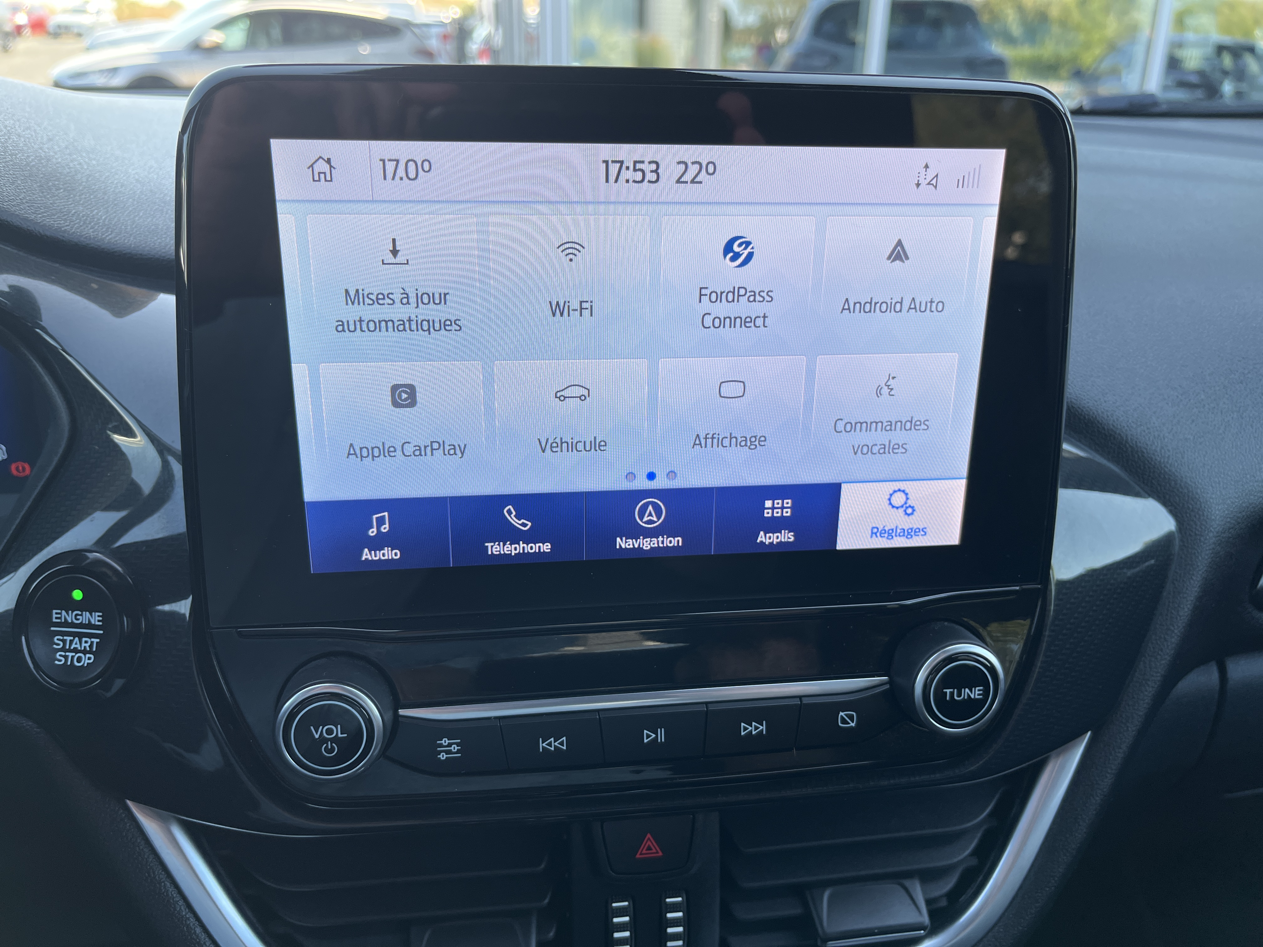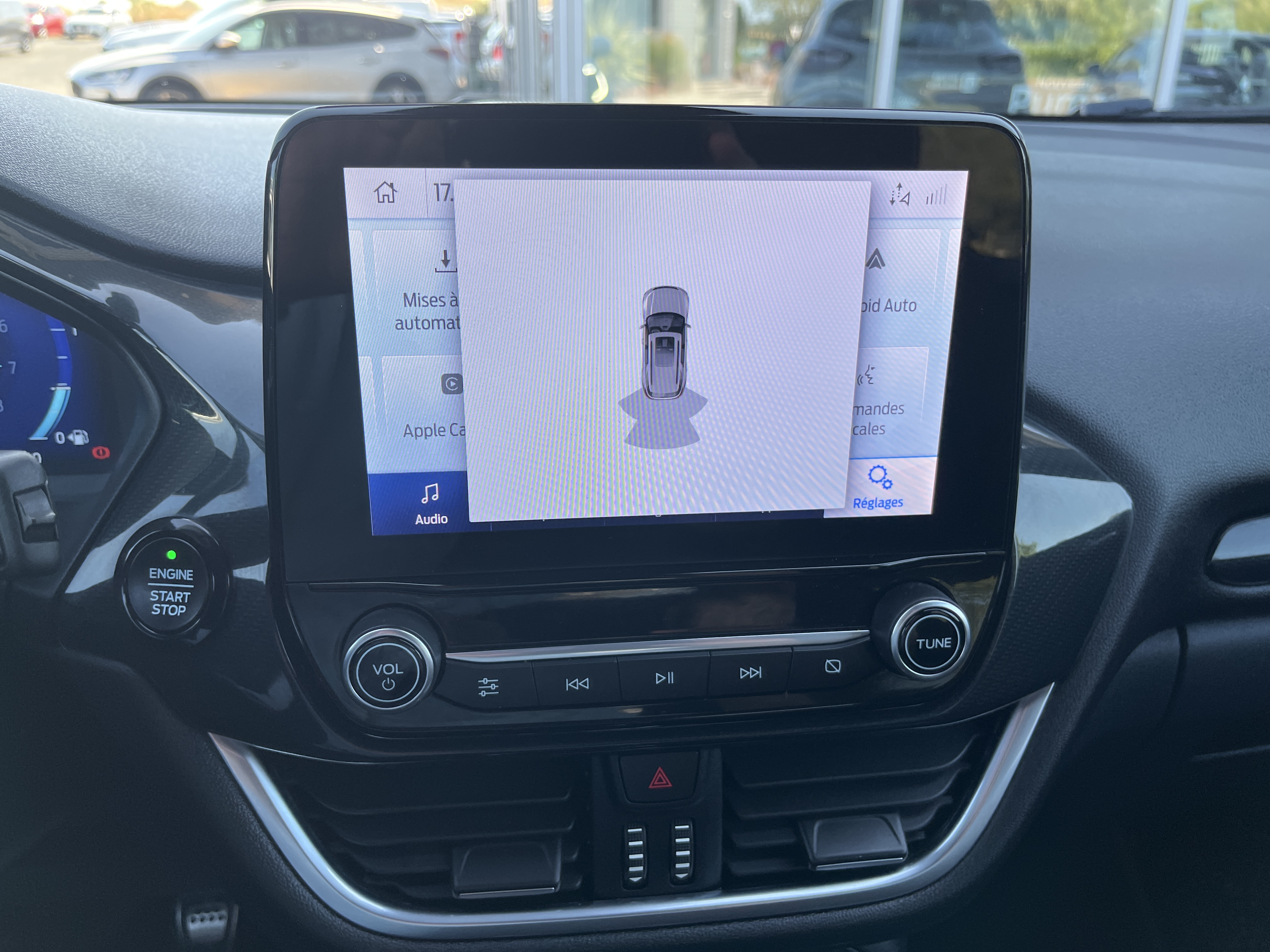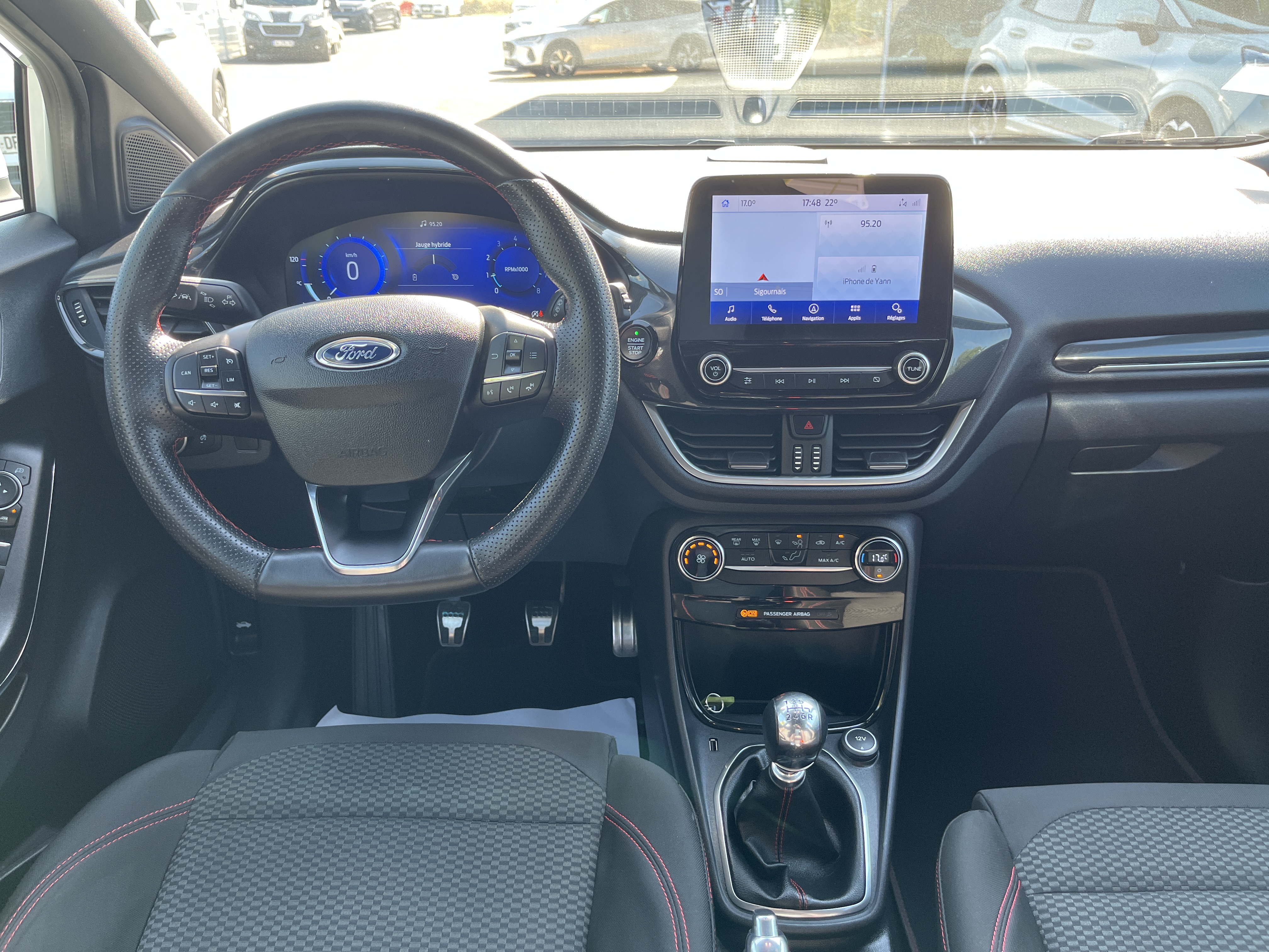 2 Fixations ISOFIX aux places AR5 Modes de conduite selectionnables (normal, eco, sport, faible adherence, trail)Aide au demarrage en coteAide au maintien dans la voie avec detection des bas-cotesAide au stationnement ARAlerte de franchissement involontaire de ligneAllumage automatique des feuxBadges exterieurs ST-LineBanquette AR rabattable 60/40Bouton de demarrage "Ford Power"Combine d'instrumentalisation numerique 12.3" avec EcomodeCorrecteur electronique de trajectoire (ESP)Eclairage d'ambiance interieurEnvironnement noirFeux AR a LEDFeux de jour a LEDFeux de route intelligents - Commutation automatique des feux de route aux feux de croisementGrille de calandre ST-LineJantes alliage 17" 5x2 branches finition Black Machined (pour pneus toutes saisons 215/55 R17)Kit de carrosserie ST-LineKit de reparation pneumatiqueLimiteur de vitesse intelligent (affichage instantane des limitations de vitesse sur le tableau dePedalier AluminiumPhares antibrouillard AV avec fonction eclairage des anglesPlancher de coffre ajustablePlaques de seuil de portes AV ST-LineRecharge de telephone par inductionReconnaissance des panneaux de signalisationRegulateur de vitesseRetroviseurs exterieurs couleur carrosserie electriques, degivrants et rabattables electriquementSellerie tissu noir Court avec surpiqures rougesSysteme audio Ford SYNC3 avec ecran tactile 8", commandes vocales, 2 ports USB, alerte contresens,Systeme de navigation Europe et points d'interets MichelinSysteme de prevention de collision avec freinage post-collision et detection pietonsSysteme de surveillance de la pression des pneusTrappe Easy FuelVerrouillage centralise a distanceVitres AV/AR electriques a impulsion haut/basVolant a meplat 3 branches ST-Line avec surpiqures rougesFonction Apple Carplay & Androïd Auto