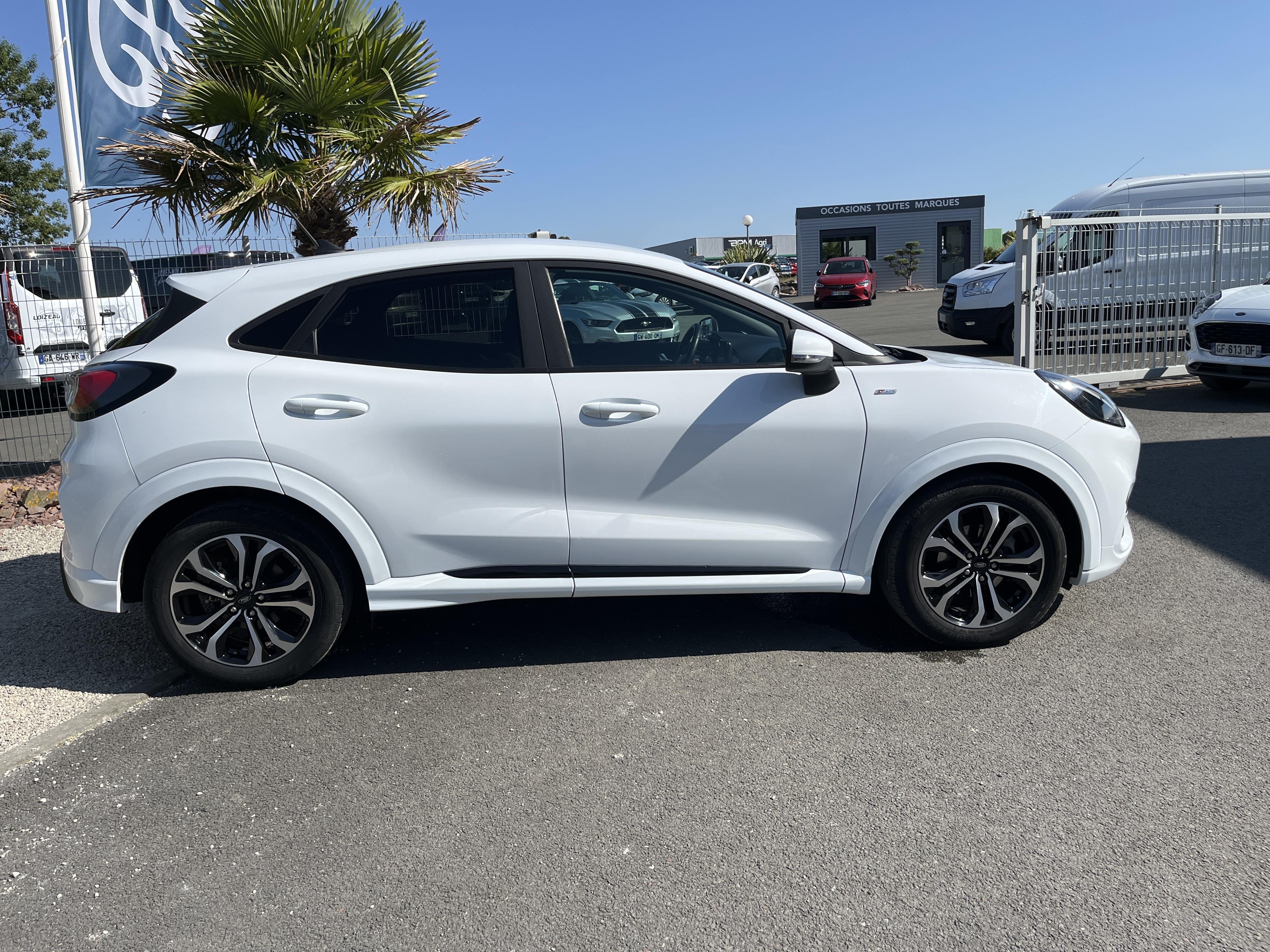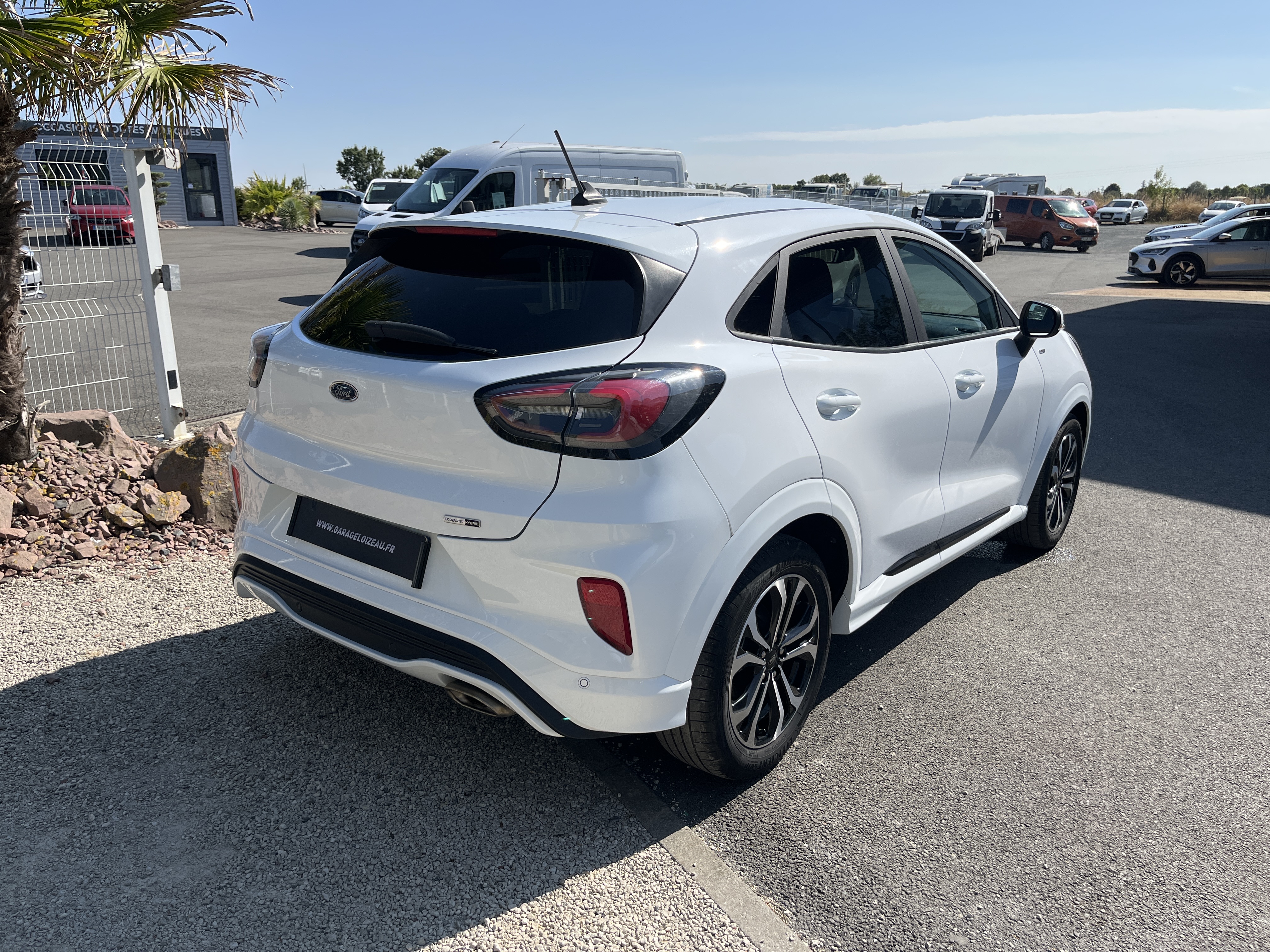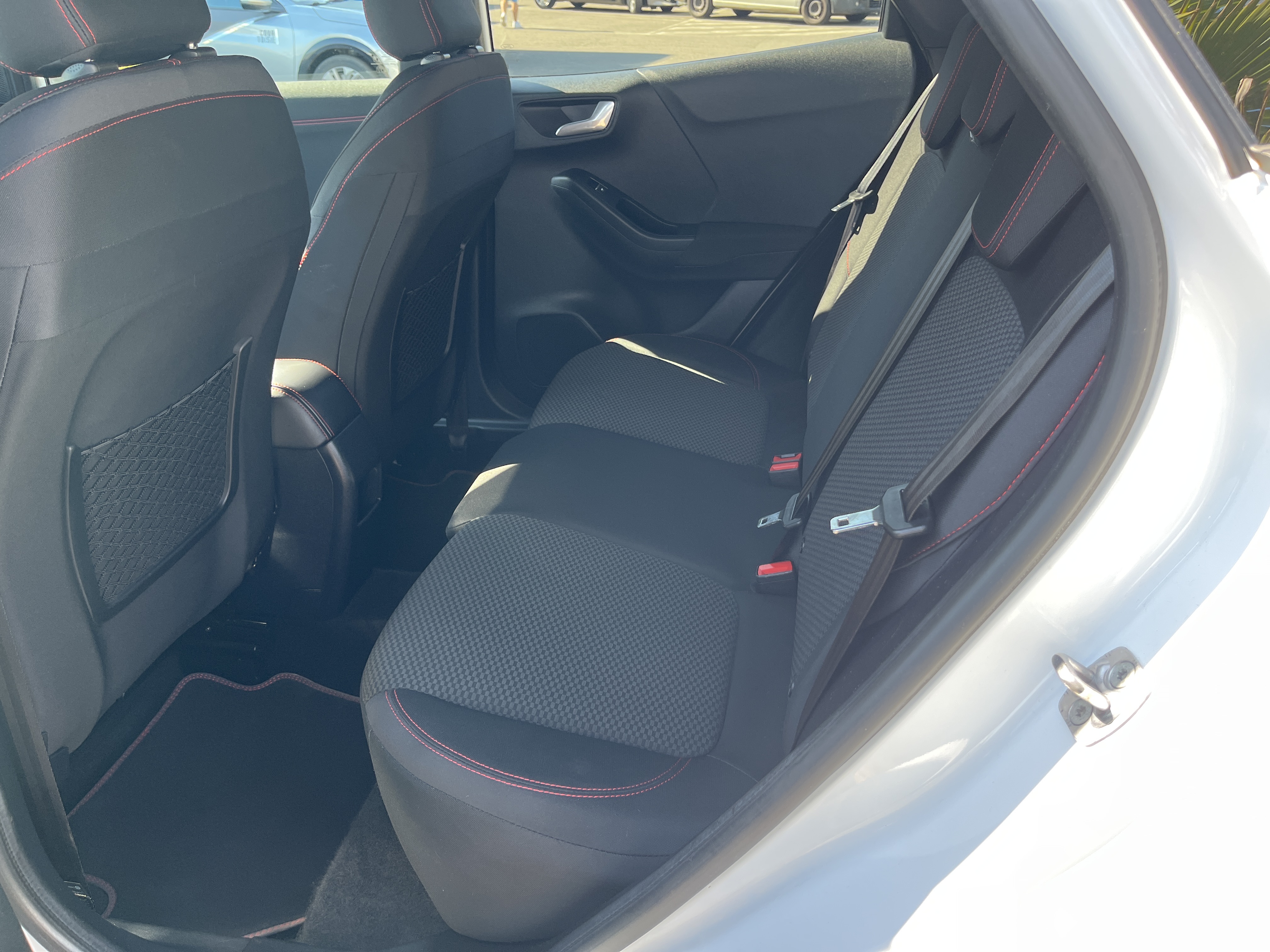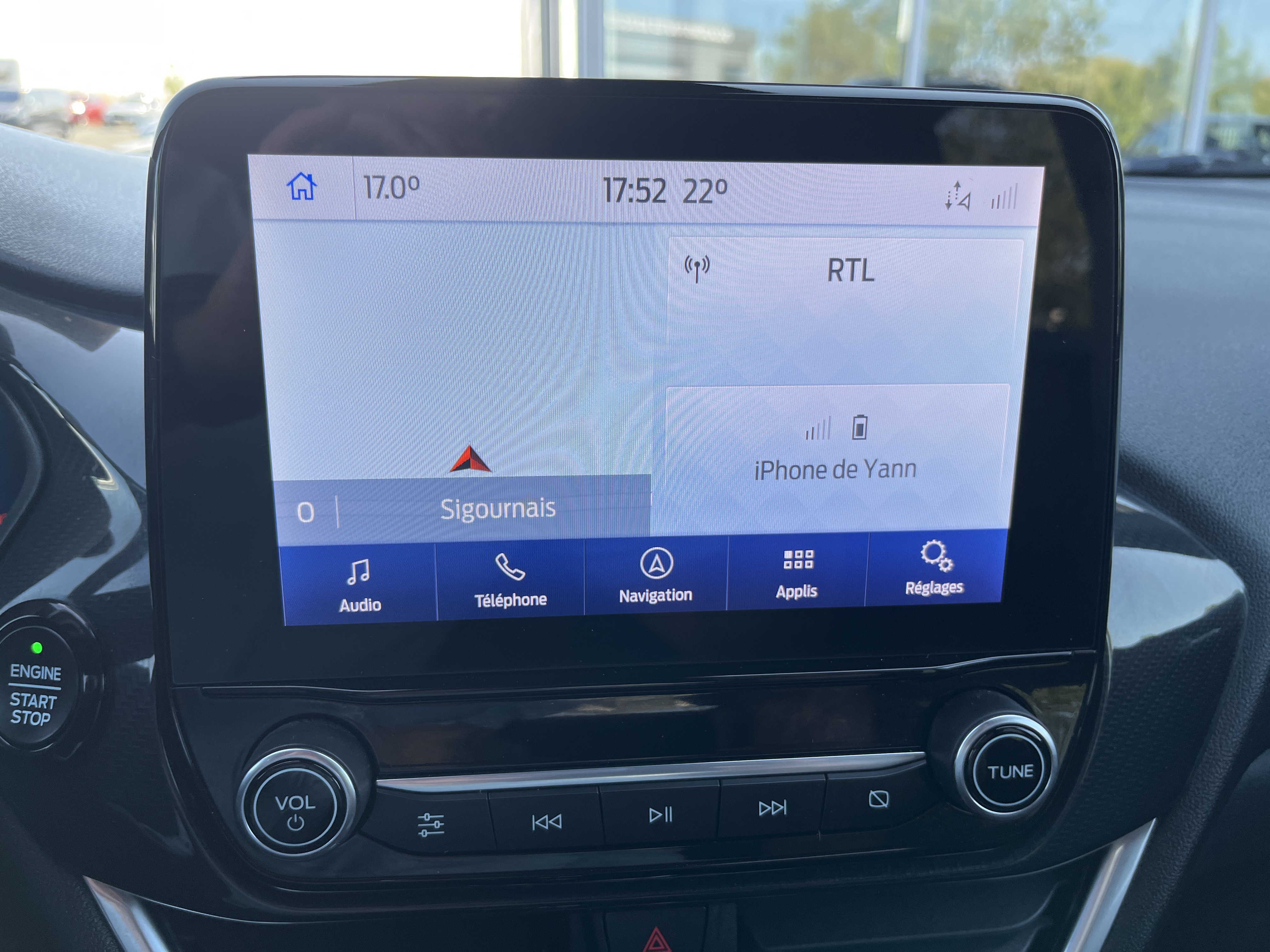 2 Fixations ISOFIX aux places AR5 Modes de conduite selectionnables (normal, eco, sport, faible adherence, trail)Aide au demarrage en coteAide au maintien dans la voie avec detection des bas-cotesAide au stationnement ARAlerte de franchissement involontaire de ligneAllumage automatique des feuxBadges exterieurs ST-LineBanquette AR rabattable 60/40Bouton de demarrage "Ford Power"Combine d'instrumentalisation numerique 12.3" avec EcomodeCorrecteur electronique de trajectoire (ESP)Eclairage d'ambiance interieurEnvironnement noirFeux AR a LEDFeux de jour a LEDFeux de route intelligents - Commutation automatique des feux de route aux feux de croisementGrille de calandre ST-LineJantes alliage 17" 5x2 branches finition Black Machined (pour pneus toutes saisons 215/55 R17)Kit de carrosserie ST-LineKit de reparation pneumatiqueLimiteur de vitesse intelligent (affichage instantane des limitations de vitesse sur le tableau dePedalier AluminiumPhares antibrouillard AV avec fonction eclairage des anglesPlancher de coffre ajustablePlaques de seuil de portes AV ST-LineRecharge de telephone par inductionReconnaissance des panneaux de signalisationRegulateur de vitesseRetroviseurs exterieurs couleur carrosserie electriques, degivrants et rabattables electriquementSellerie tissu noir Court avec surpiqures rougesSysteme audio Ford SYNC3 avec ecran tactile 8", commandes vocales, 2 ports USB, alerte contresens,Systeme de navigation Europe et points d'interets MichelinSysteme de prevention de collision avec freinage post-collision et detection pietonsSysteme de surveillance de la pression des pneusTrappe Easy FuelVerrouillage centralise a distanceVitres AV/AR electriques a impulsion haut/basVolant a meplat 3 branches ST-Line avec surpiqures rougesFonction Apple Carplay & Androïd Auto