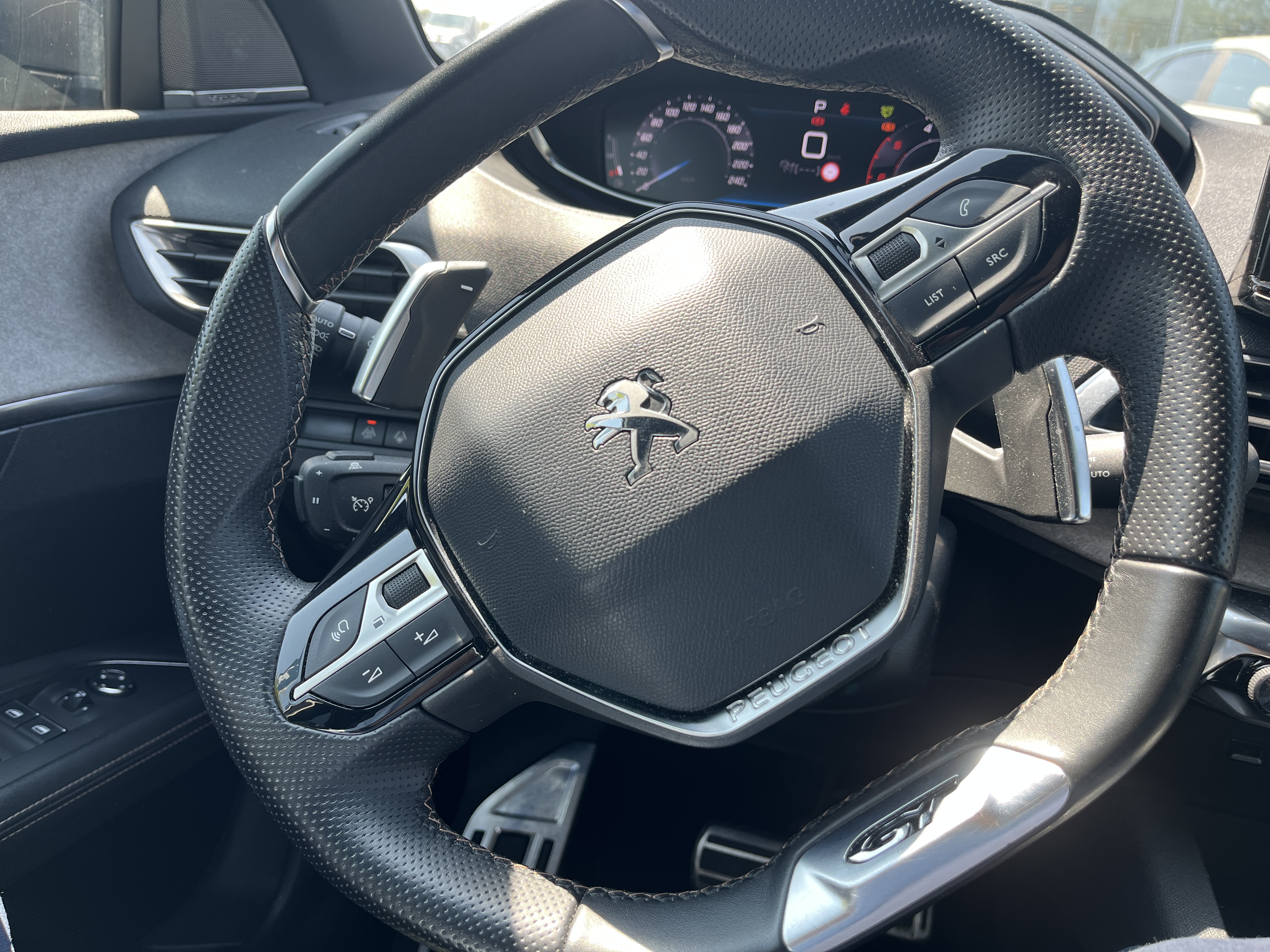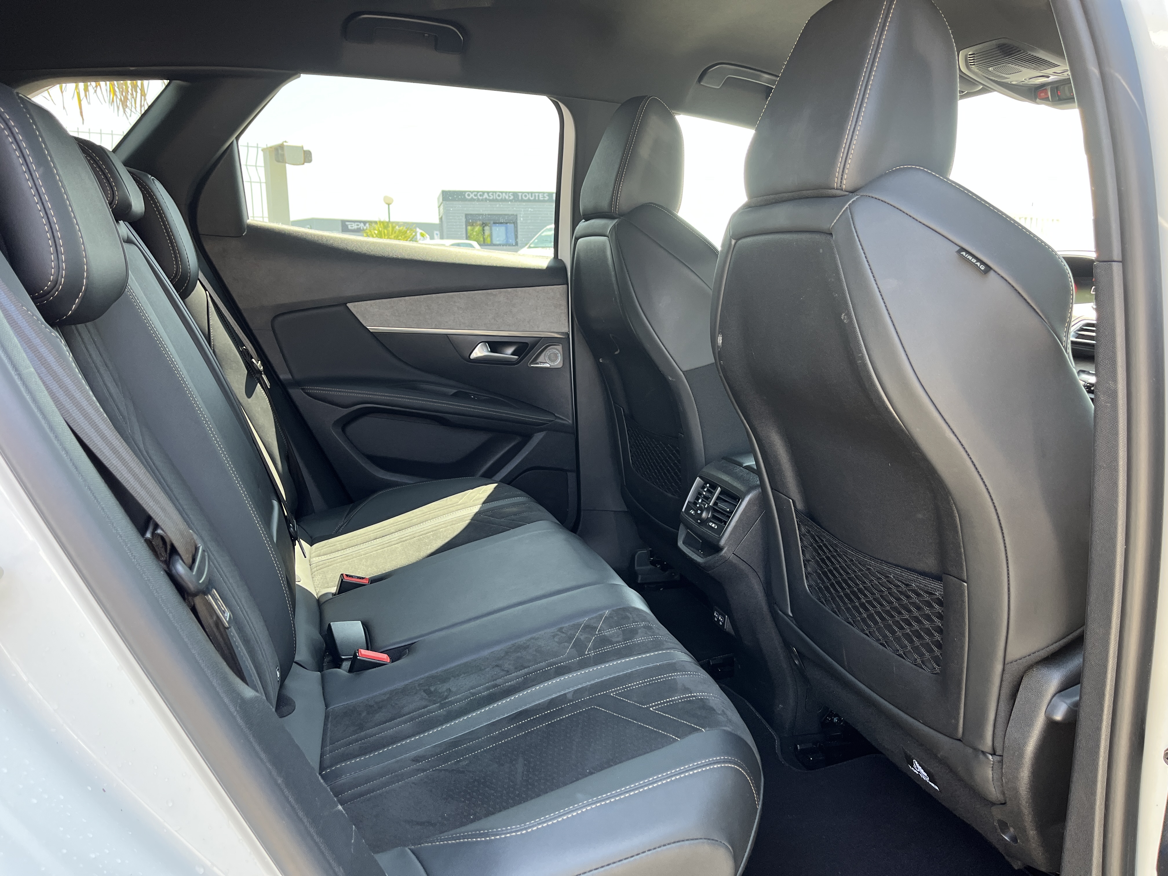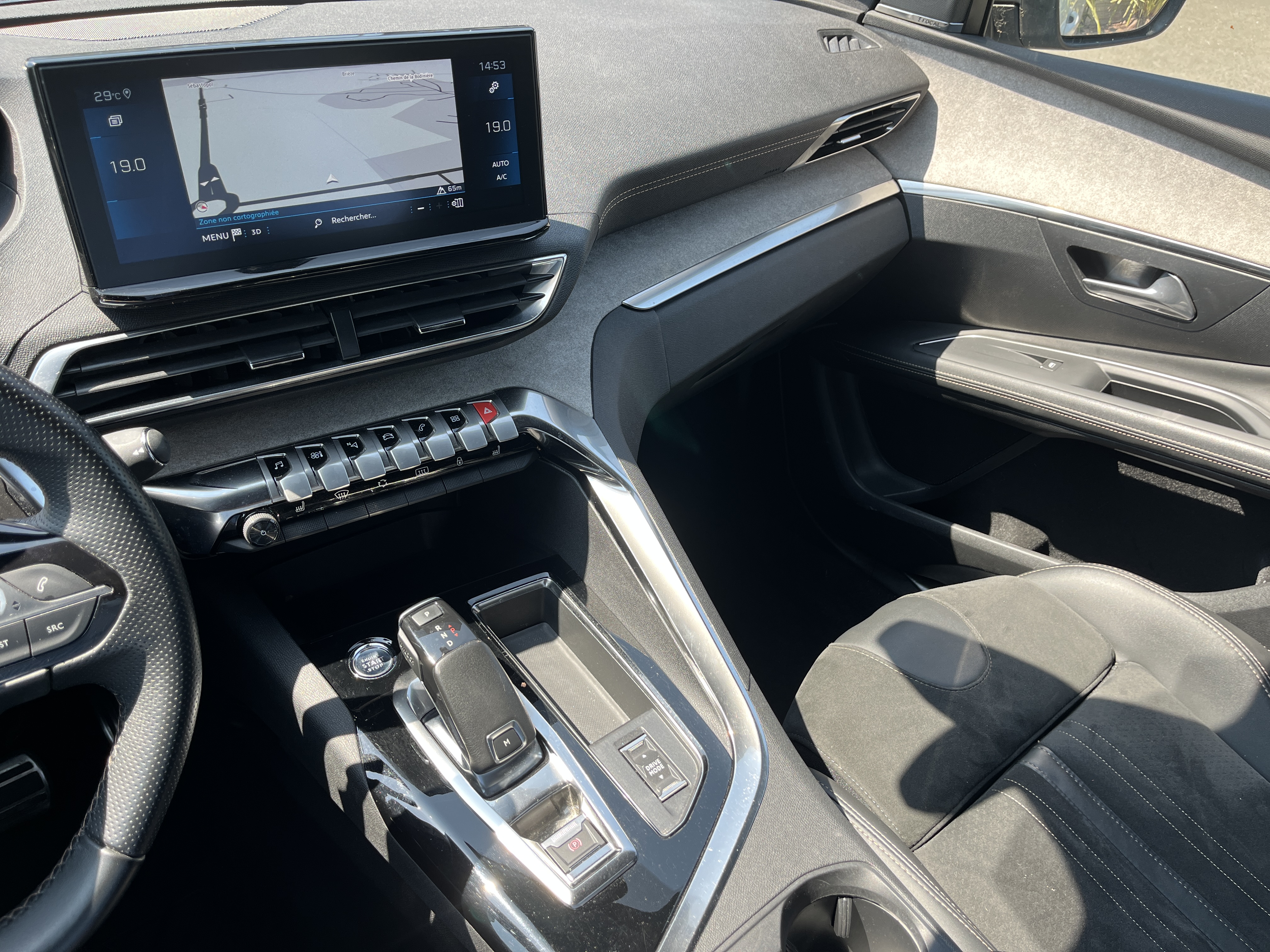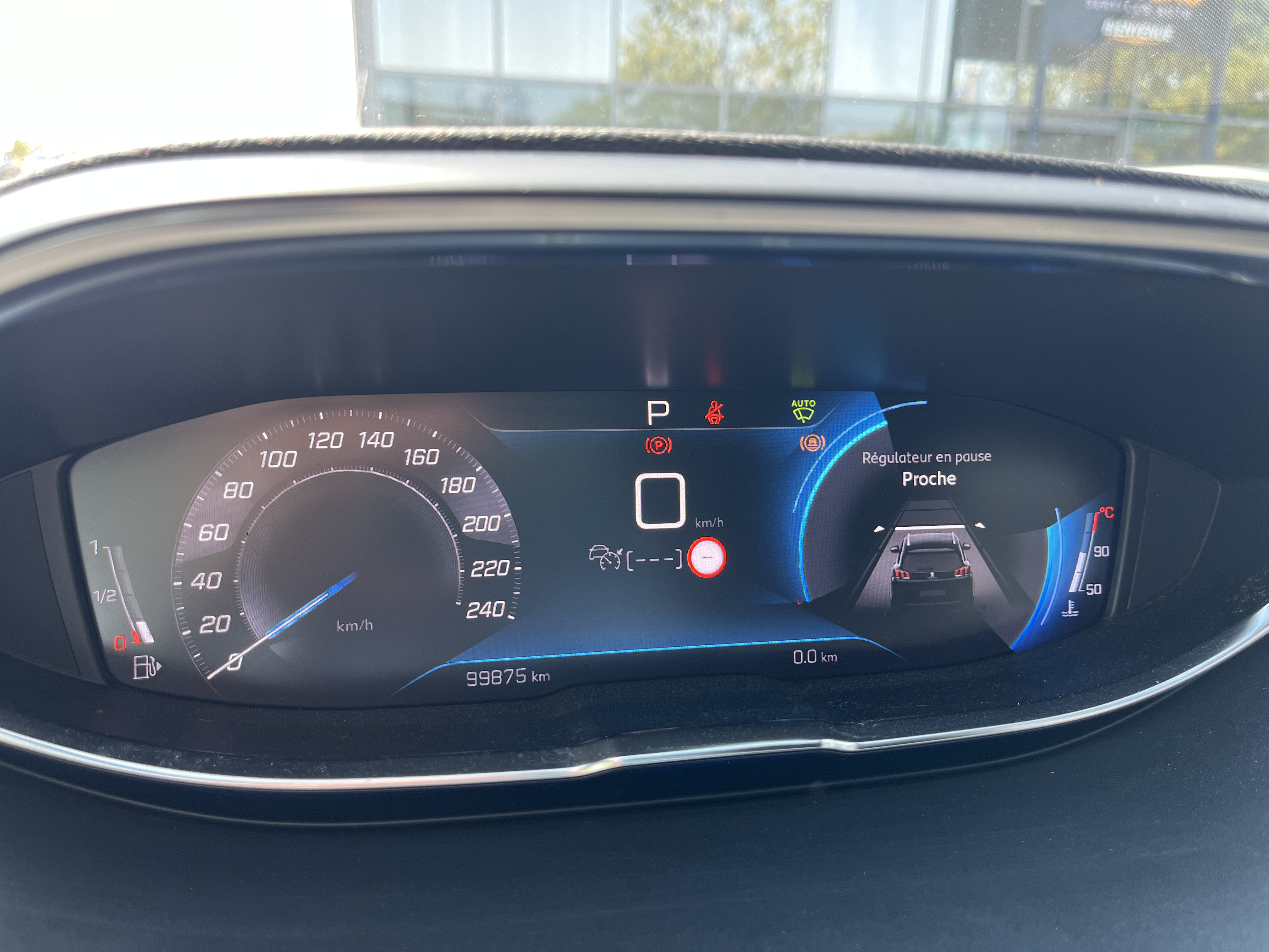 Acces et demarrage mains libresAccoudoir central AV a ouverture papillon, avec compartiment de rangement eclaire et refrigerableAide graphique et sonore au stationnement ARAir conditionne automatique bi-zone avec aerateurs aux places ARBarres de toit longitudinales profilee en AluminiumCalandre GT avec design evolutif chromeCanules d'echappement de style chromeesControle dynamique de stabilite CDS avec antipatinage electronique ASRCoques de retroviseurs exterieurs Noir Perla NeraDecors de planche de bord et panneaux de portes Alcantara Gris GrevalDetection de sous-gonflage indirecteDrive Mode : Choix de 2 modes de conduite (Eco ou Sport)Driver Sport PackEclairage interieur LED : plafonnier et rangementEssuie-vitre AR avec enclenchement automatique en marche AREssuie-vitre AV avec systeme de lavage "Magic Wash"Fixations ISOFIX aux 3 places AR en rang 2Fonction "Mirror Screen" (Apple CarPlay / Android Auto )Frein de stationnement electrique avec aide au demarrage en penteHabitacle et ciel de pavillon Noir MistralJantes alliage 18" "Detroit" bi-ton diamantees Noir OnyxKit de depannage de pneumatique : compresseur 12 volts, flacon de produit de colmatage, anneau deLeve-vitres AV/AR electriques et sequentiels avec antipincementNavigation 3D connectee avec ecran tactile capacitif 10" HDPack City 1Pack Drive Assist PlusPack Eclairage d'ambiancePack Safety PlusPack VisibilitePedalier et repose-pied conducteur en aluminiumPeugeot Connect: Ecran tactile capacitif 10'' HD,navigation 3D connectee avec reconnaissance vocalePeugeot i-Cockpit avec combine tete haute numerique haute qualite d'affichage,Projecteurs "Peugeot Full LED Technology" avec correction automatique de site, fonctionReconnaissance etendue des panneaux de signalisationRegulateur / Limiteur de vitesseRetroviseur interieur photosensible sans cadreRetroviseurs exterieurs rabattables electriquement avec eclairage d'accueil a LEDToggle Switches chromes (touches piano d'activation des fonctions de l'ecran tactile)Toit "Black Diamond" (toit Noir Perla Nera)Verrouillage automatique de tous les ouvrants en roulantVitres laterales AR et lunette AR surteinteesVolant cuir fleur perfore avec bagues chromees et badge GT