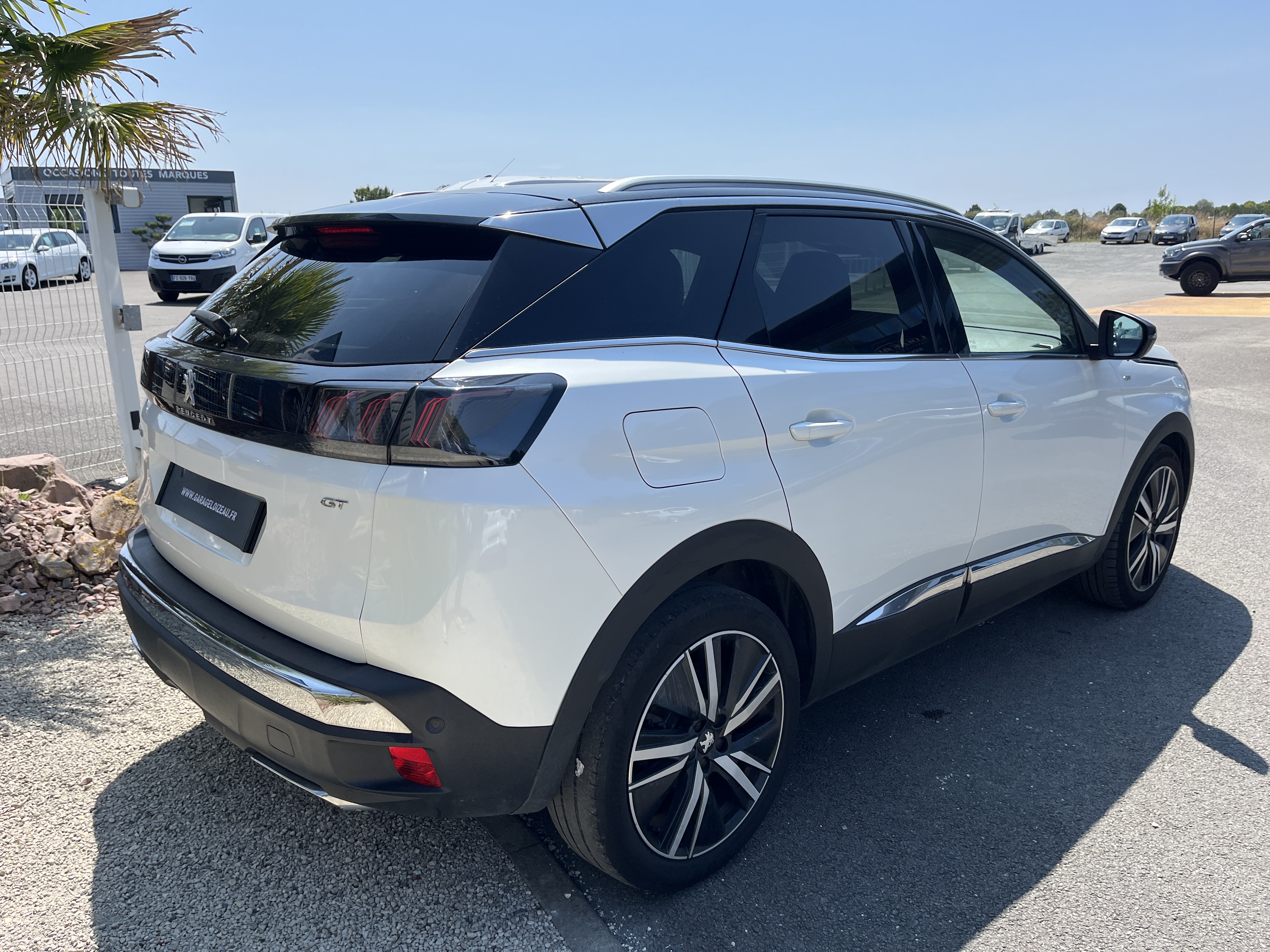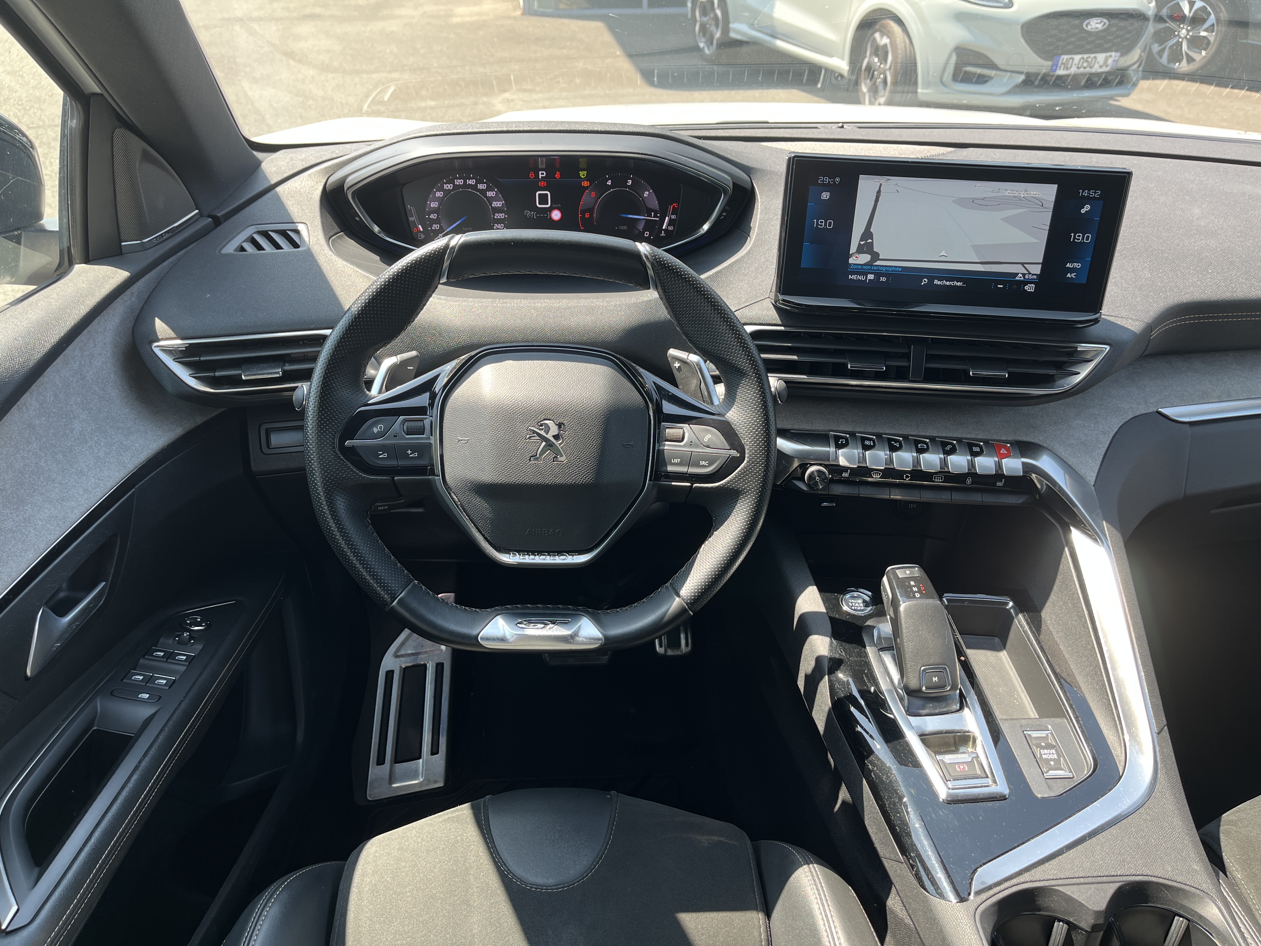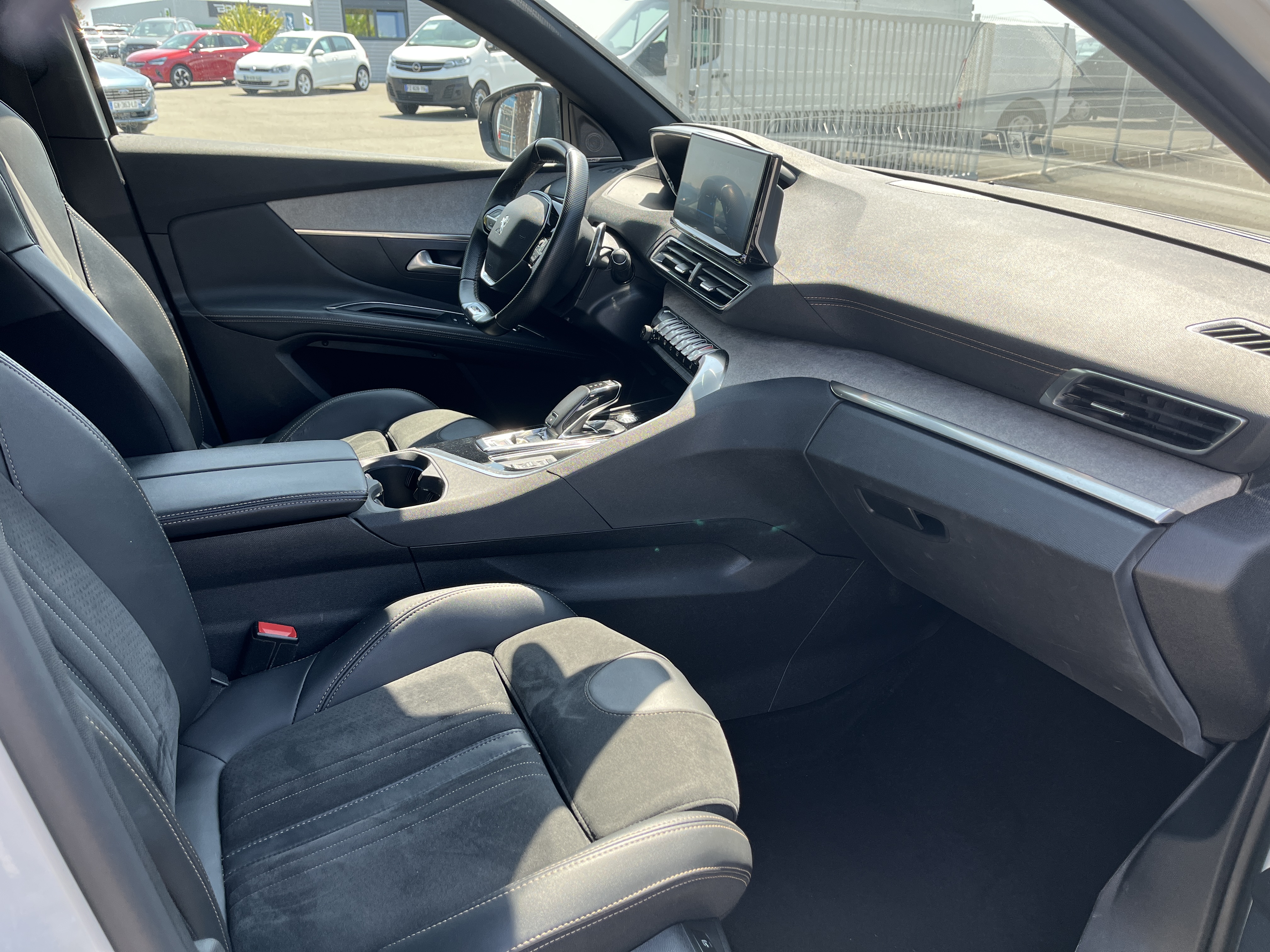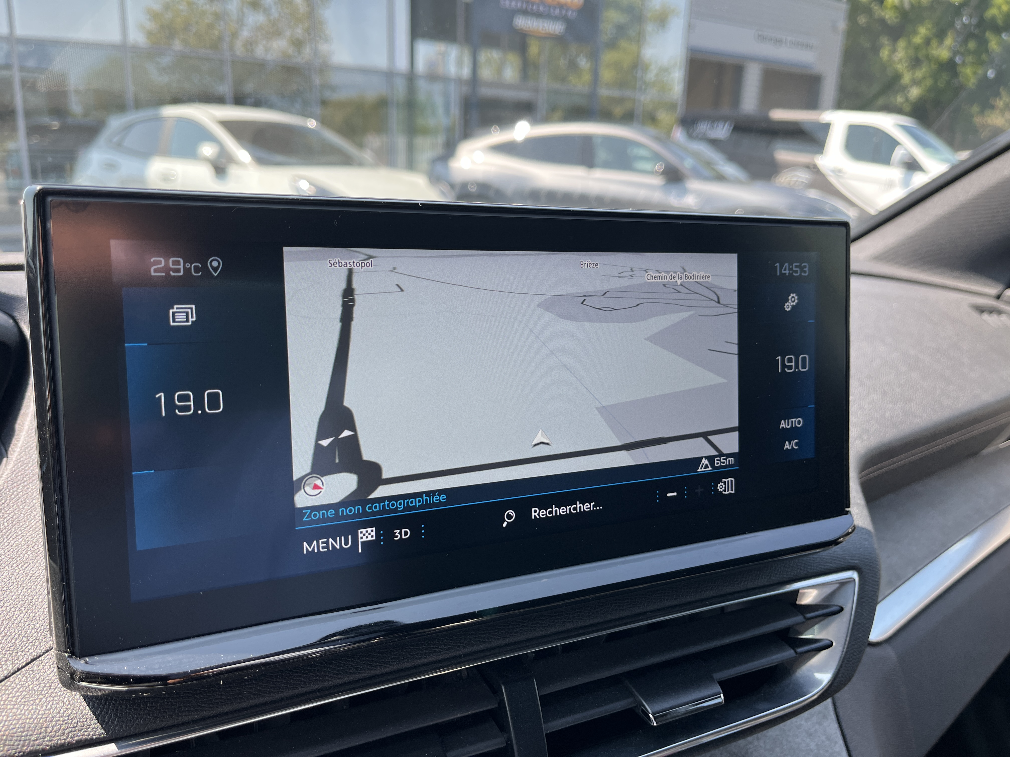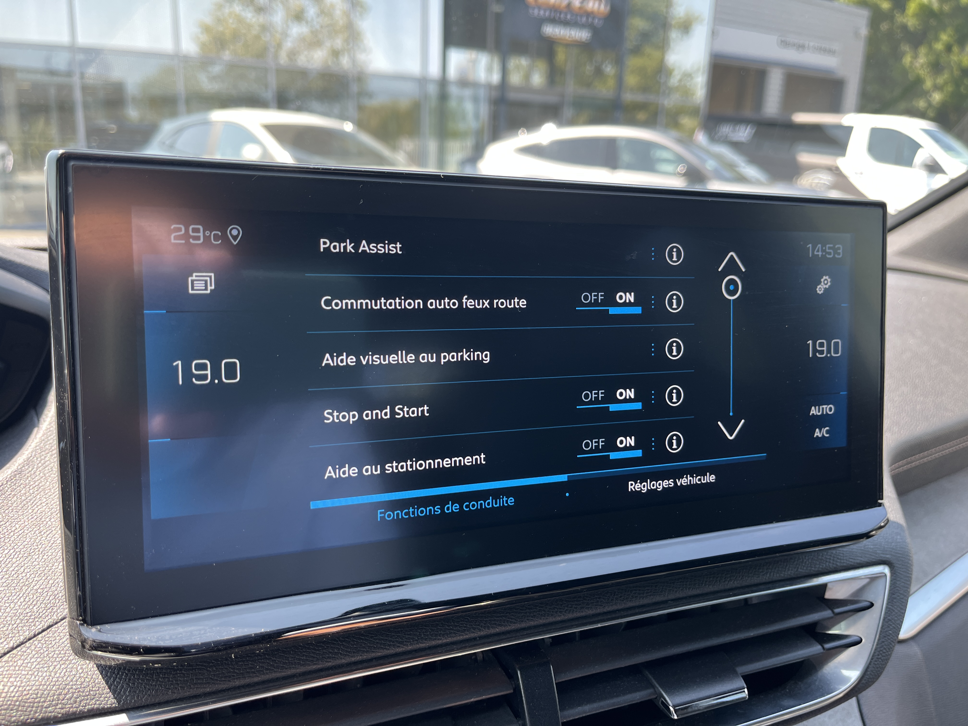Acces et demarrage mains libresAccoudoir central AV a ouverture papillon, avec compartiment de rangement eclaire et refrigerableAide graphique et sonore au stationnement ARAir conditionne automatique bi-zone avec aerateurs aux places ARBarres de toit longitudinales profilee en AluminiumCalandre GT avec design evolutif chromeCanules d'echappement de style chromeesControle dynamique de stabilite CDS avec antipatinage electronique ASRCoques de retroviseurs exterieurs Noir Perla NeraDecors de planche de bord et panneaux de portes Alcantara Gris GrevalDetection de sous-gonflage indirecteDrive Mode : Choix de 2 modes de conduite (Eco ou Sport)Driver Sport PackEclairage interieur LED : plafonnier et rangementEssuie-vitre AR avec enclenchement automatique en marche AREssuie-vitre AV avec systeme de lavage "Magic Wash"Fixations ISOFIX aux 3 places AR en rang 2Fonction "Mirror Screen" (Apple CarPlay / Android Auto )Frein de stationnement electrique avec aide au demarrage en penteHabitacle et ciel de pavillon Noir MistralJantes alliage 18" "Detroit" bi-ton diamantees Noir OnyxKit de depannage de pneumatique : compresseur 12 volts, flacon de produit de colmatage, anneau deLeve-vitres AV/AR electriques et sequentiels avec antipincementNavigation 3D connectee avec ecran tactile capacitif 10" HDPack City 1Pack Drive Assist PlusPack Eclairage d'ambiancePack Safety PlusPack VisibilitePedalier et repose-pied conducteur en aluminiumPeugeot Connect: Ecran tactile capacitif 10'' HD,navigation 3D connectee avec reconnaissance vocalePeugeot i-Cockpit avec combine tete haute numerique haute qualite d'affichage,Projecteurs "Peugeot Full LED Technology" avec correction automatique de site, fonctionReconnaissance etendue des panneaux de signalisationRegulateur / Limiteur de vitesseRetroviseur interieur photosensible sans cadreRetroviseurs exterieurs rabattables electriquement avec eclairage d'accueil a LEDToggle Switches chromes (touches piano d'activation des fonctions de l'ecran tactile)Toit "Black Diamond" (toit Noir Perla Nera)Verrouillage automatique de tous les ouvrants en roulantVitres laterales AR et lunette AR surteinteesVolant cuir fleur perfore avec bagues chromees et badge GT