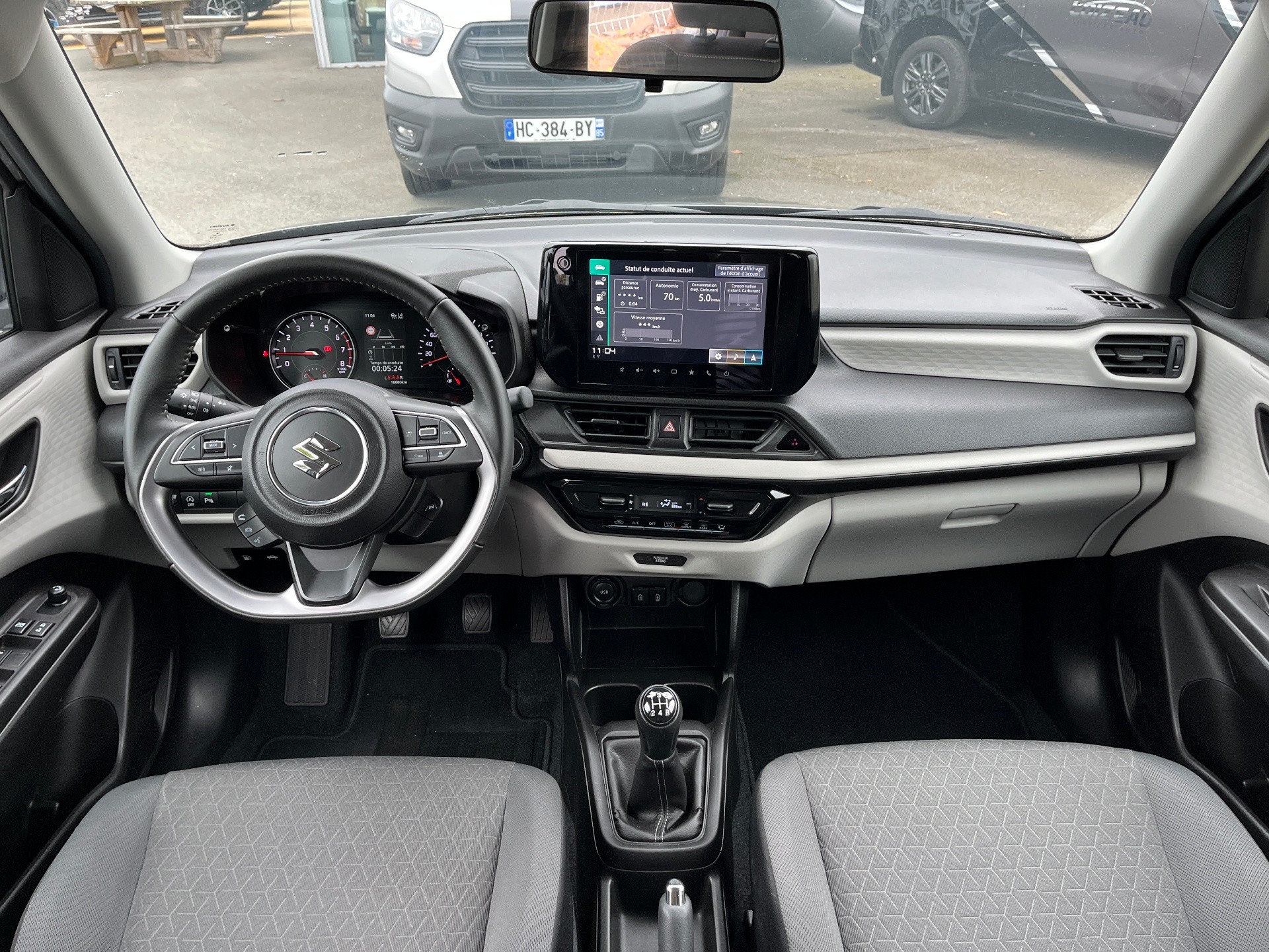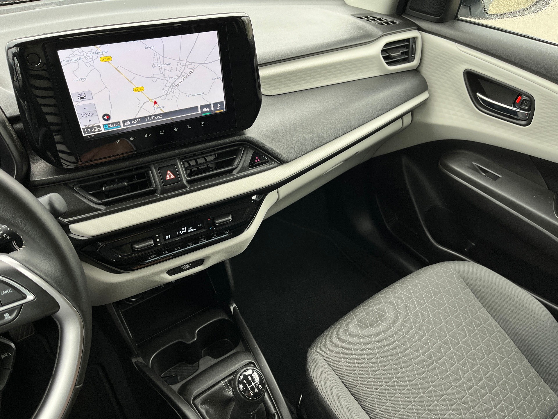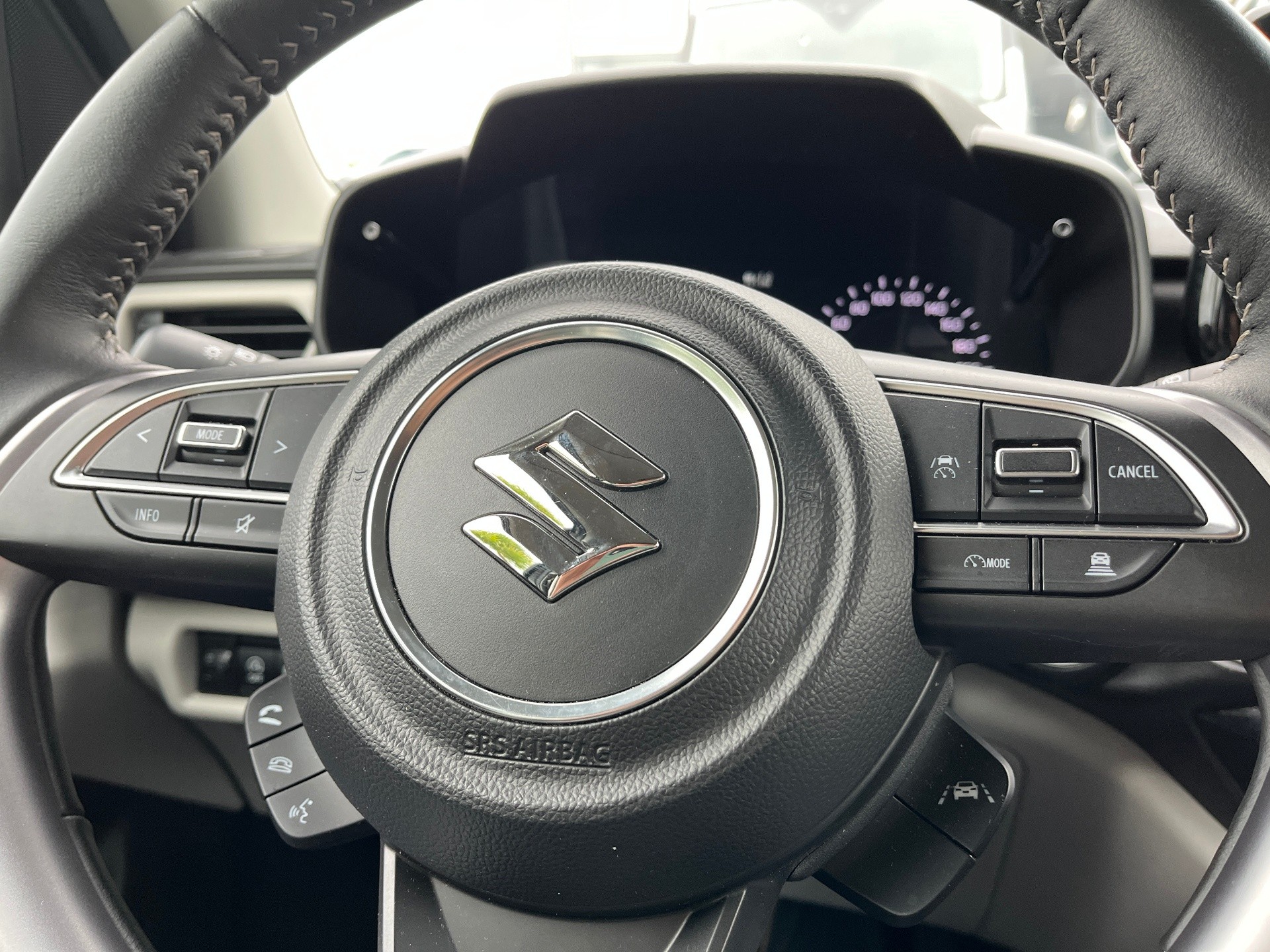 ABS avec EBD (repartiteur electronique de freinage)Adaptation intelligente a la vitesse avec limiteur de vitesseAide au demarrage en coteAide au maintien dans la voieAir conditionne manuel avec affichage digitalAlerte de changement de trajectoireAllumage automatique des feuxCalandre noire laquee en nid d'abeillesCapteurs de stationnement AR (x4)Controle du regulateur et du limiteur de vitesse sur le volantDetecteurs d'angles mortsDispositif d'ouverture et de demarrage sans cleEngine Auto Stop Start systemFeux de jour LED (integres dans les projecteurs)Fixation ISOFIX aux places AR pour sieges enfants (x2)Freinage actif d'urgence (DSBS II) avec detection des pietons, velos et motGestion automatique des feux de croisement / feux de routeHybrid SHVS (Smart Hybrid Vehicle by Suzuki)Jantes en alliage leger 16" et pneumatiques 185/55 R16Leve-vitres electriques ARLeve-vitres electriques AVOrdinateur de bord avec ecran couleur LCD 4.2''Projecteurs & feux AR a LEDReconnaissance des panneaux de signalisation ameliore (TSR)Regulateur de vitesse adaptatif (ACC)Retroviseurs exterieurs reglables electriquement et degivrants avec detecteurs d'angles mortsSecurite enfant aux portes ARSellerie tissu noire et griseSieges AV chauffantsSysteme Audio avec HP aux places AV et connexion BluetoothSysteme multimedia avec ecran tactile 9" : camera de recul, connectivite Smartphone sans filVitres et lunette AR surteinteesVolant 3 branches gaine cuir
