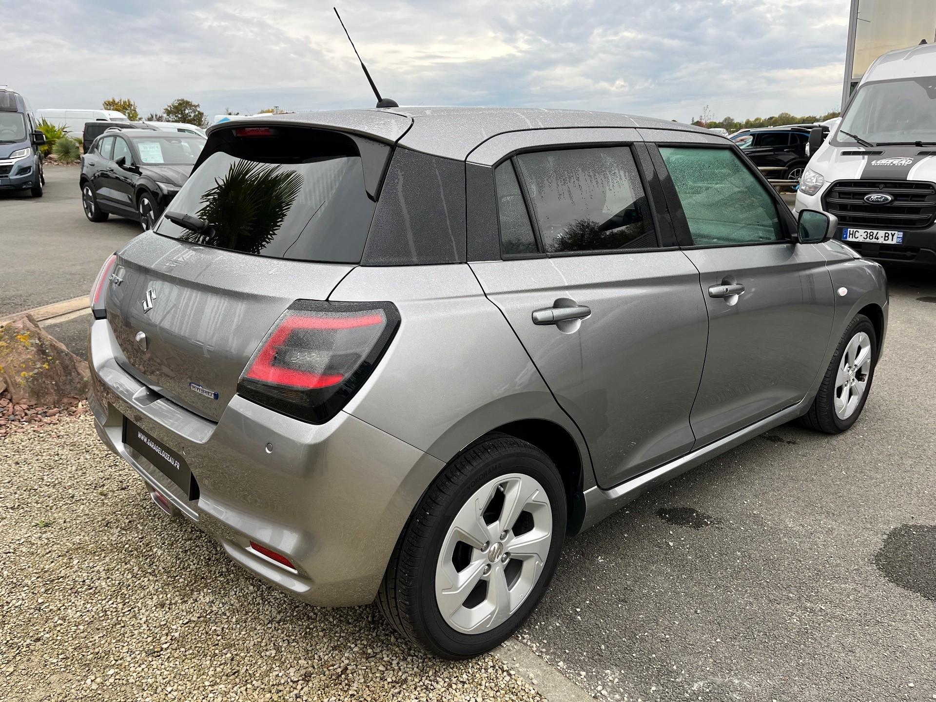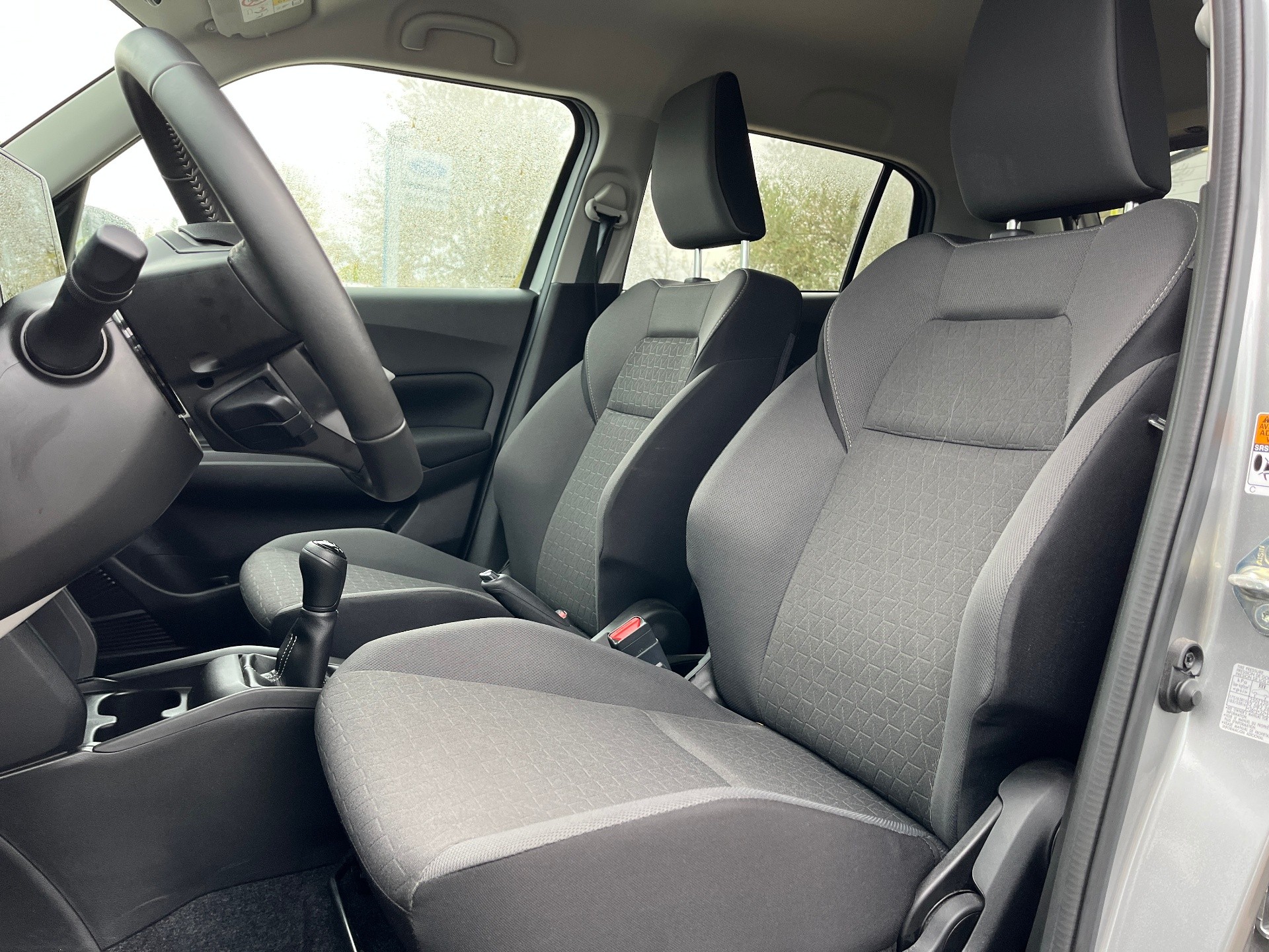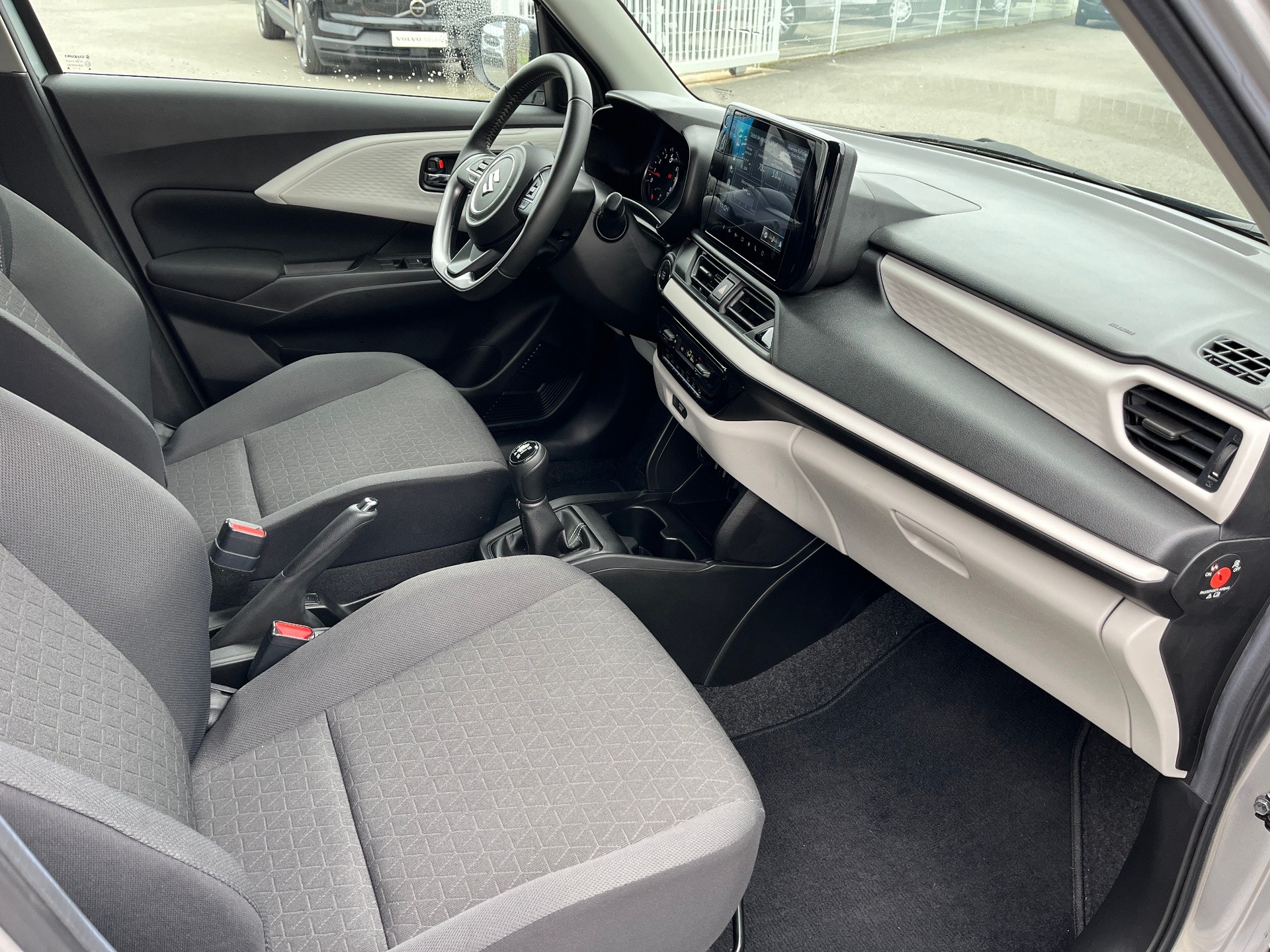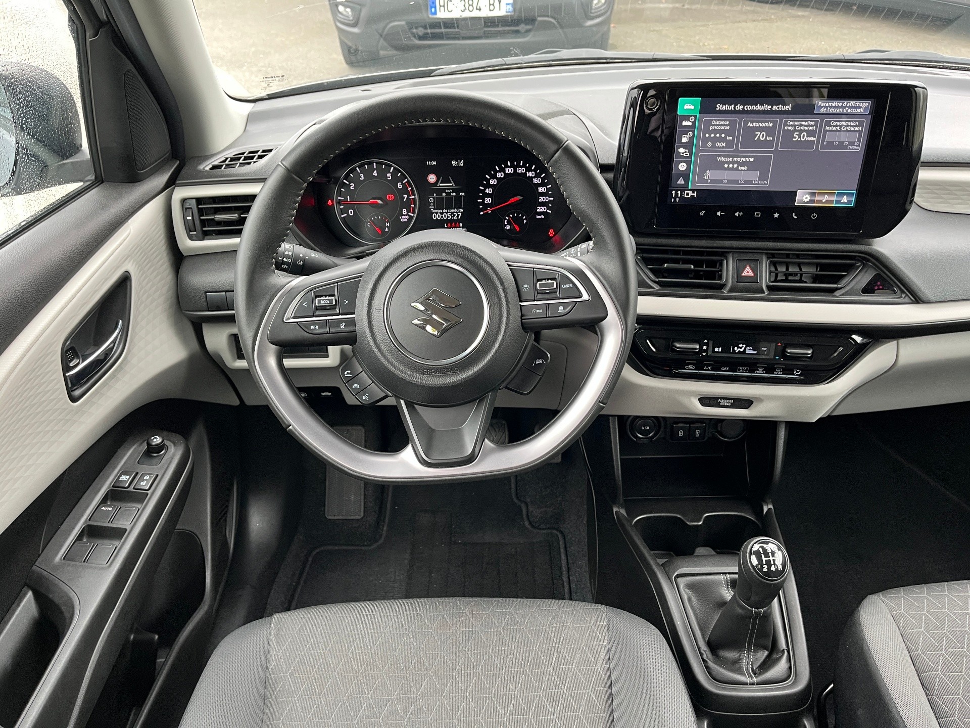 ABS avec EBD (repartiteur electronique de freinage)Adaptation intelligente a la vitesse avec limiteur de vitesseAide au demarrage en coteAide au maintien dans la voieAir conditionne manuel avec affichage digitalAlerte de changement de trajectoireAllumage automatique des feuxCalandre noire laquee en nid d'abeillesCapteurs de stationnement AR (x4)Controle du regulateur et du limiteur de vitesse sur le volantDetecteurs d'angles mortsDispositif d'ouverture et de demarrage sans cleEngine Auto Stop Start systemFeux de jour LED (integres dans les projecteurs)Fixation ISOFIX aux places AR pour sieges enfants (x2)Freinage actif d'urgence (DSBS II) avec detection des pietons, velos et motGestion automatique des feux de croisement / feux de routeHybrid SHVS (Smart Hybrid Vehicle by Suzuki)Jantes en alliage leger 16" et pneumatiques 185/55 R16Leve-vitres electriques ARLeve-vitres electriques AVOrdinateur de bord avec ecran couleur LCD 4.2''Projecteurs & feux AR a LEDReconnaissance des panneaux de signalisation ameliore (TSR)Regulateur de vitesse adaptatif (ACC)Retroviseurs exterieurs reglables electriquement et degivrants avec detecteurs d'angles mortsSecurite enfant aux portes ARSellerie tissu noire et griseSieges AV chauffantsSysteme Audio avec HP aux places AV et connexion BluetoothSysteme multimedia avec ecran tactile 9" : camera de recul, connectivite Smartphone sans filVitres et lunette AR surteinteesVolant 3 branches gaine cuir